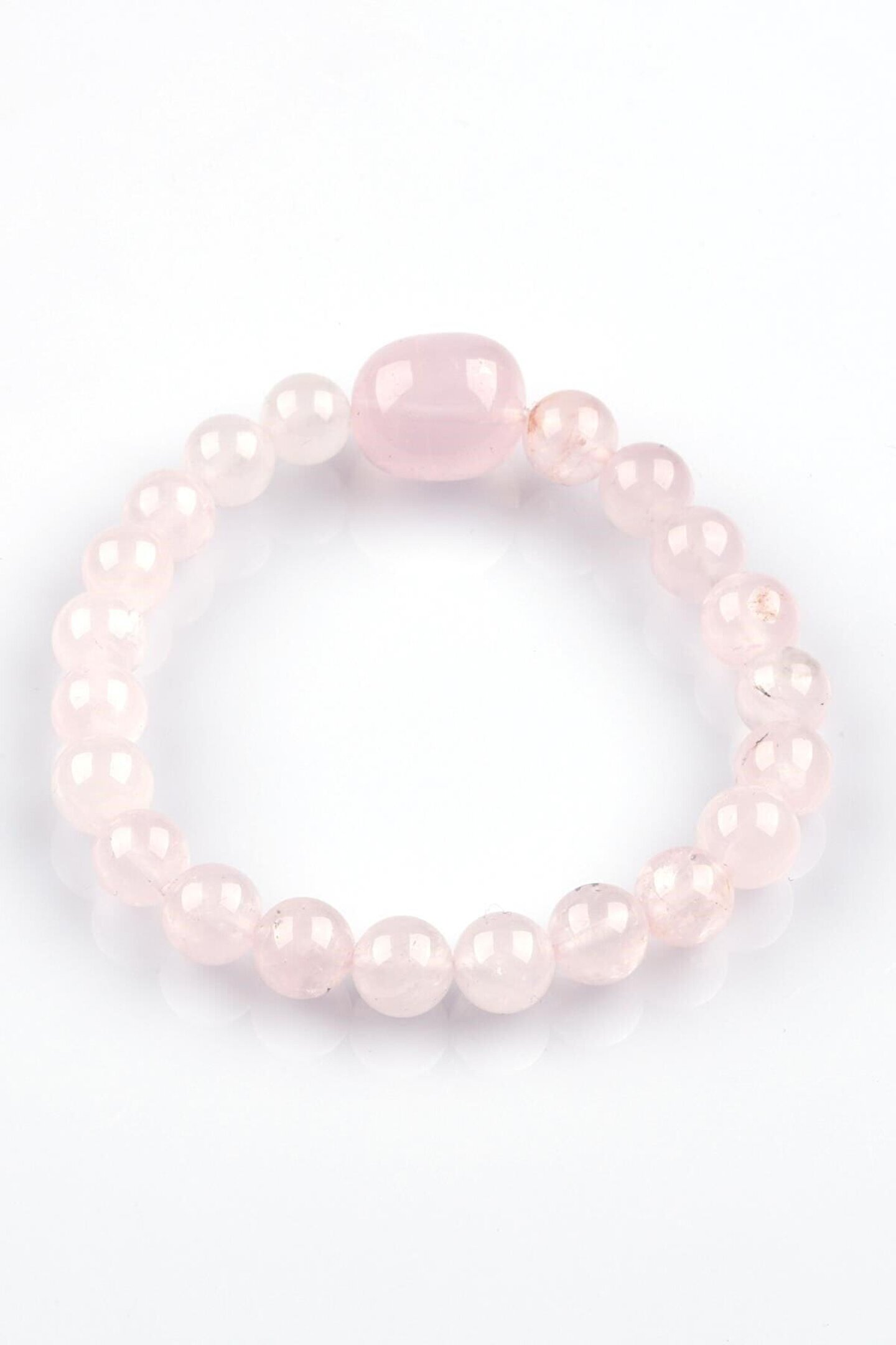 DOĞAL TAŞ CENNETİ Pembe Kuvars Doğal Taş Bileklik 8 Mm Küre Kesim