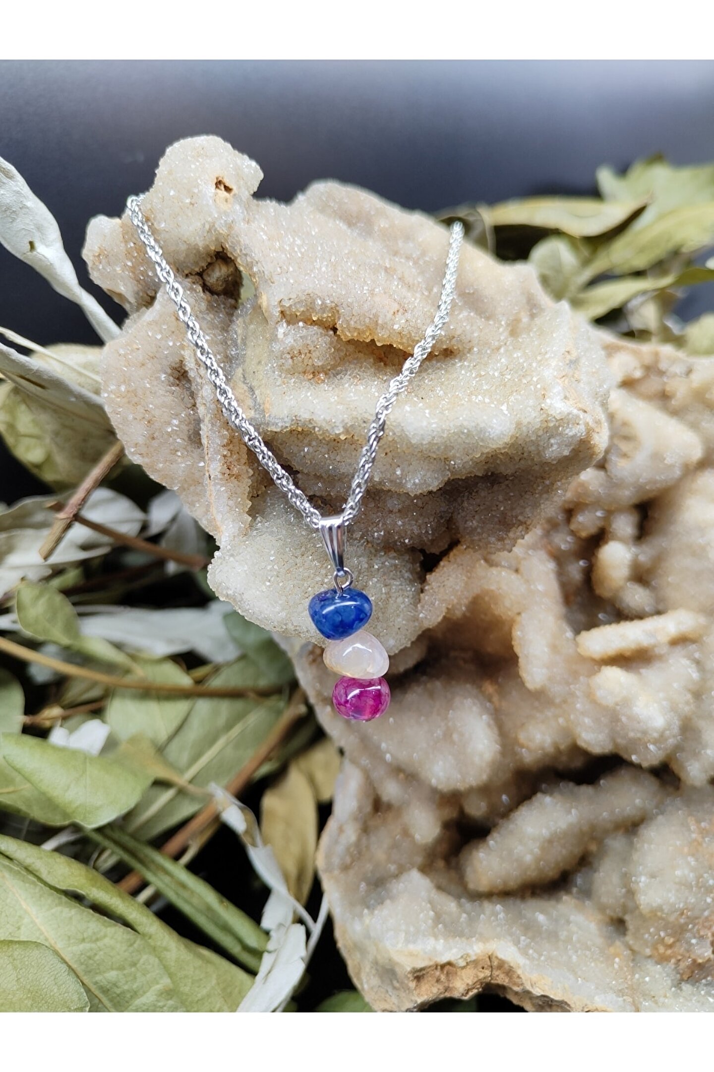 DOĞAL TAŞ CENNETİ Renkli Akik Doğal Taş Kolye Ucu (sertifikalı) (47 Cm Zincir Dahil)