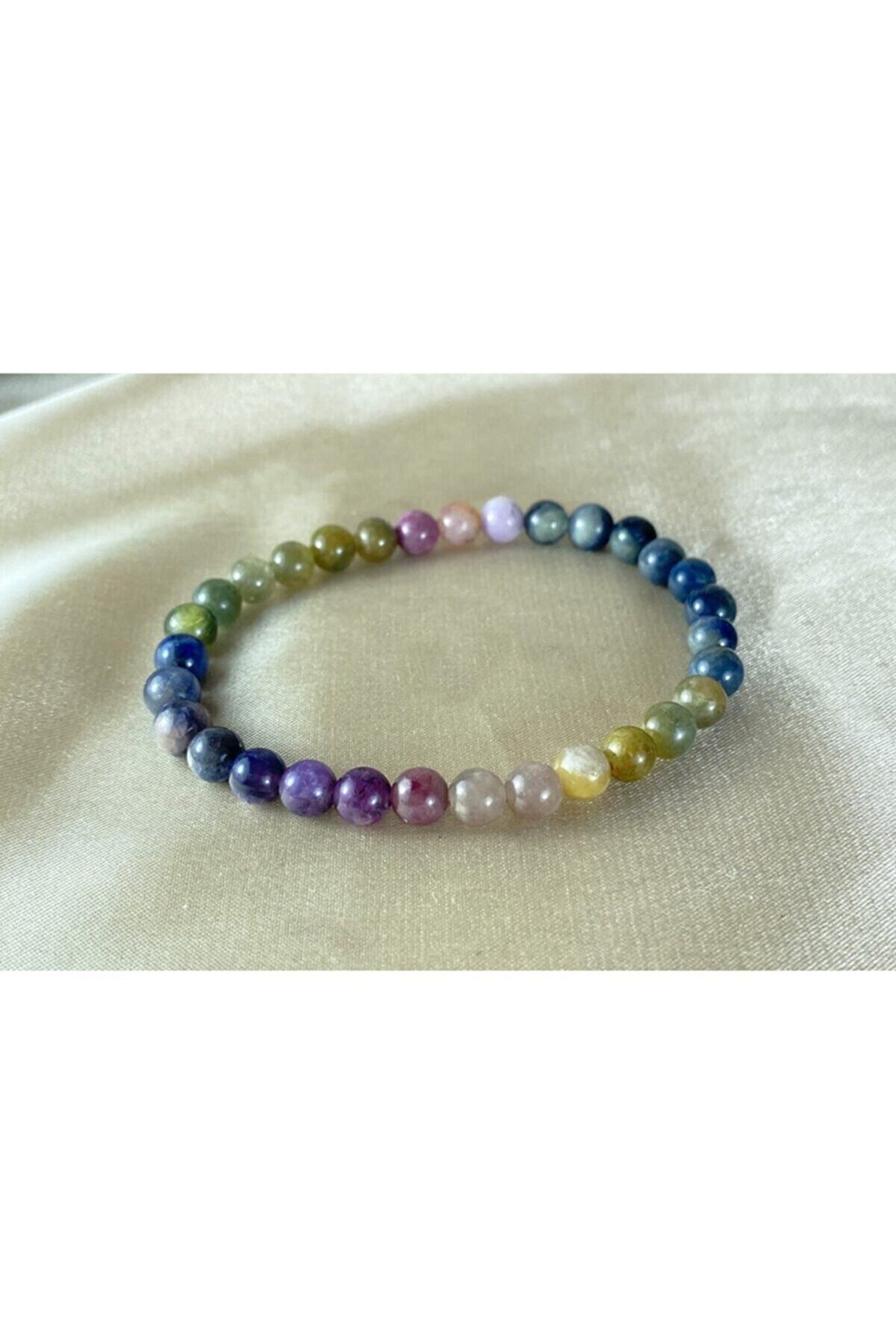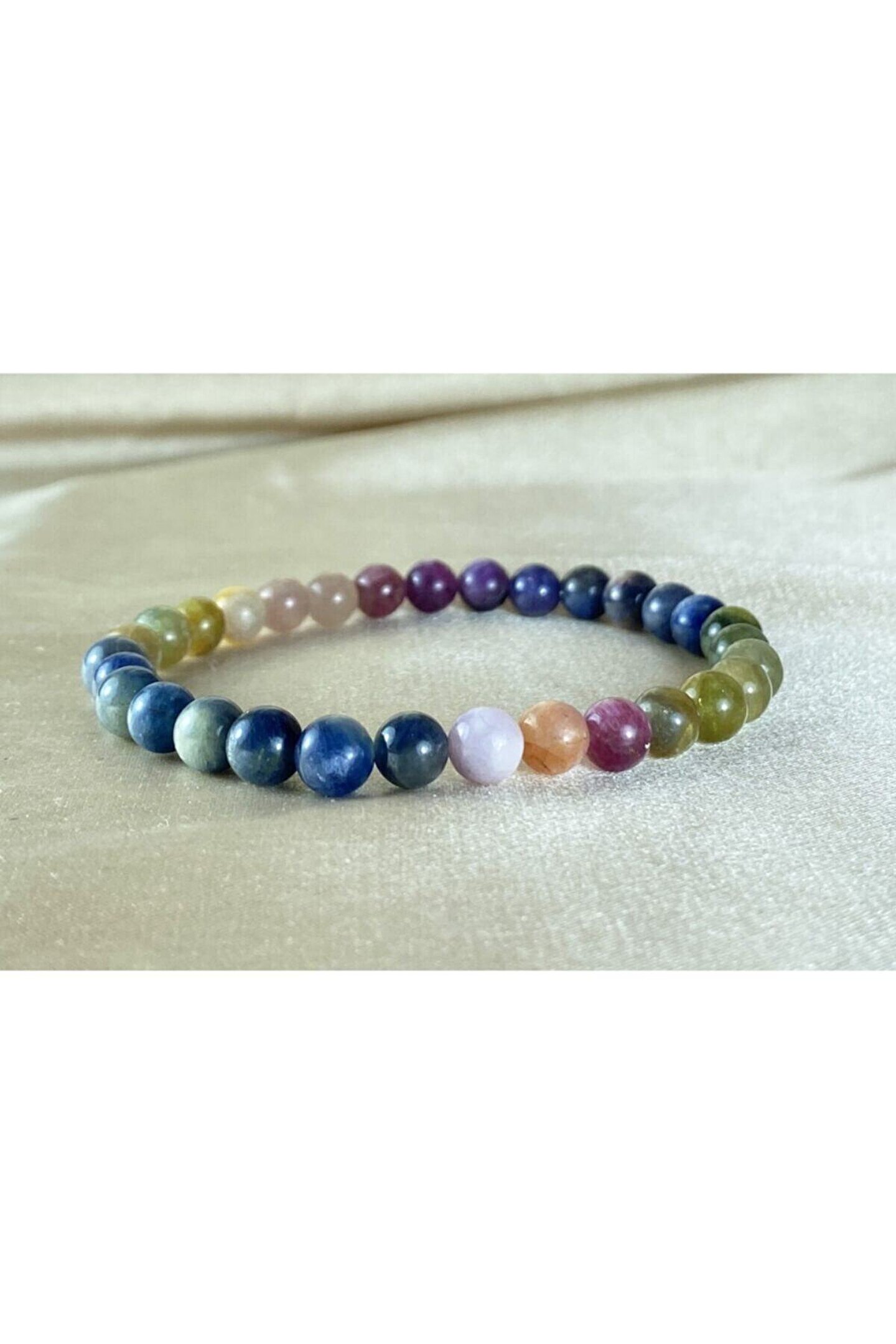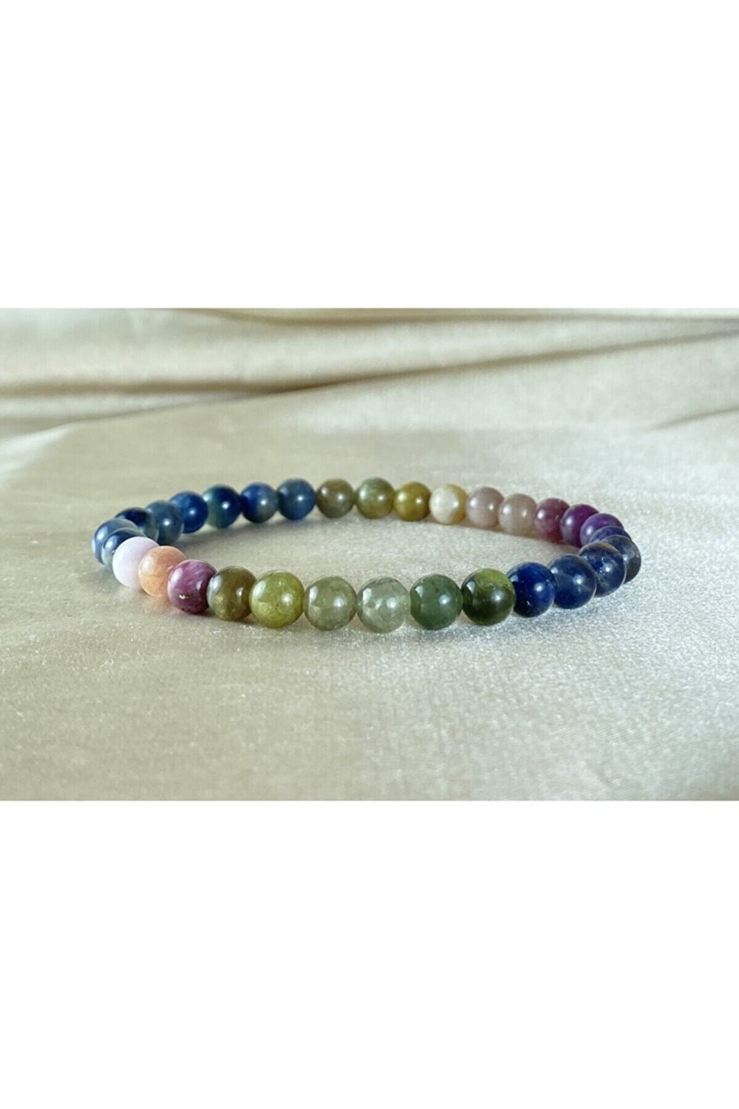 Safir Taşı, doğal taş bileklik içerisinde kendi gibi değerli Yakut Taşı ve Zümrüt Taşı da eklenerek muhteşem bir Karma Doğal Taş Bileklik olarak eşi az bulunan harika bir şifacıya dönüştü.; ; Doğal Taşlar ve Özellikleri sayesinde bir doğal taş bileklikten beklediğiniz şifayı ve enerjiyi size verebilirken aynı zamanda şık ve tarz bir aksesuar olarak beğeninize sunuldu.; ; Zümrüt Taşı hafıza ve ilişkilerinizdeki üzerindeki muhteşem etkisi, Yakut Taşı pozitif enerji ve ruhsal ataklara olan etkisiyle, Safir Taşı ise genel sağlık ve psikolojiniz üzerindeki olumlu etkileriyle tam bir şifalı taşlar kombinasyonu.; ; Muhteşem renkleri ve şifalı taş özellikleriyle severek kullanabileceğiniz aksesuarlarınızdan biri olacak.; ; Bileklik tane ebatları 8 mm;