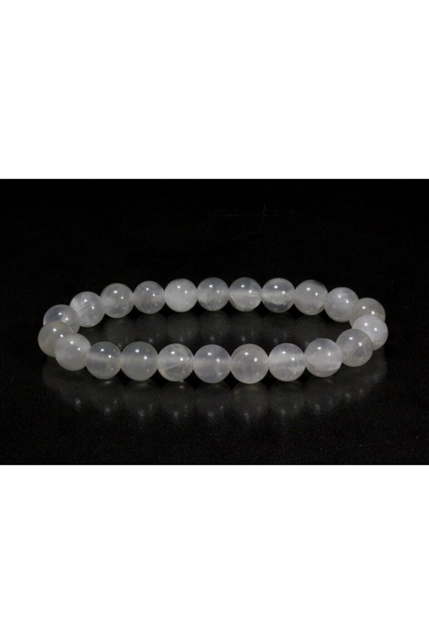 Selenit taşı evinizi koruyucu bir kalkan gibi koruyabilecek, güven ve huzur vererek zihinsel karmaşaların üstesinden gelmeniz için destek olacaktır.; ; Beyaz rengin saflığı ve güzelliği ile her türlü kombininizle kullanbilieceğiniz bir aksesuar olacak.; ; Selenit bileklik tane ölçüleri 8 mm;