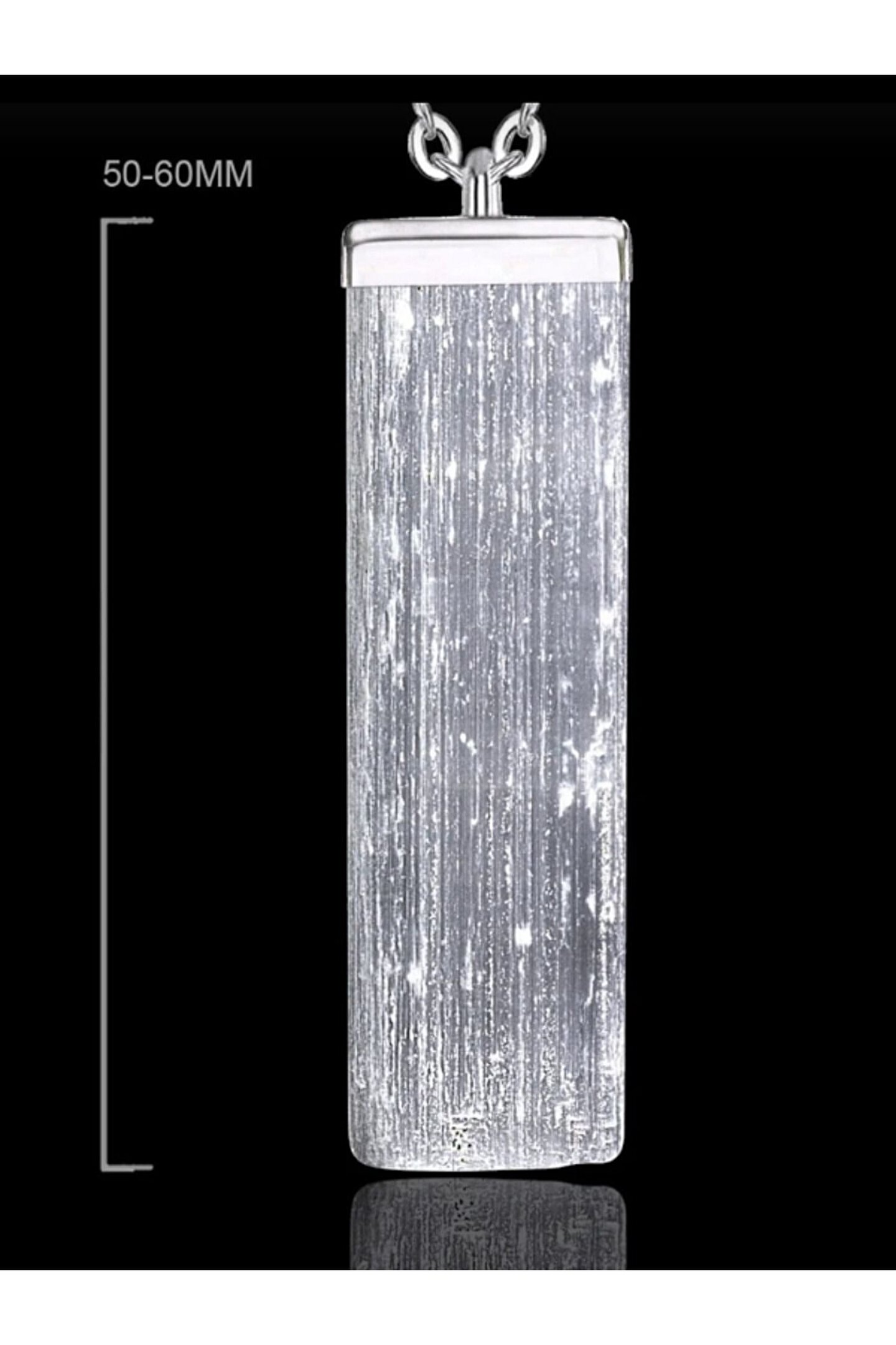 Selenit ham kolye ucu, doğal taşların zarifliğini ve şıklığını yansıtan bir aksesuar seçeneğidir; Doğal taş kullanımı sayesinde her kolye benzersiz ve otantik bir görünüm sunar; Çelik zincirli yapısı ile dayanıklılığı artırırken, kararmaya karşı direnç gösterir;
