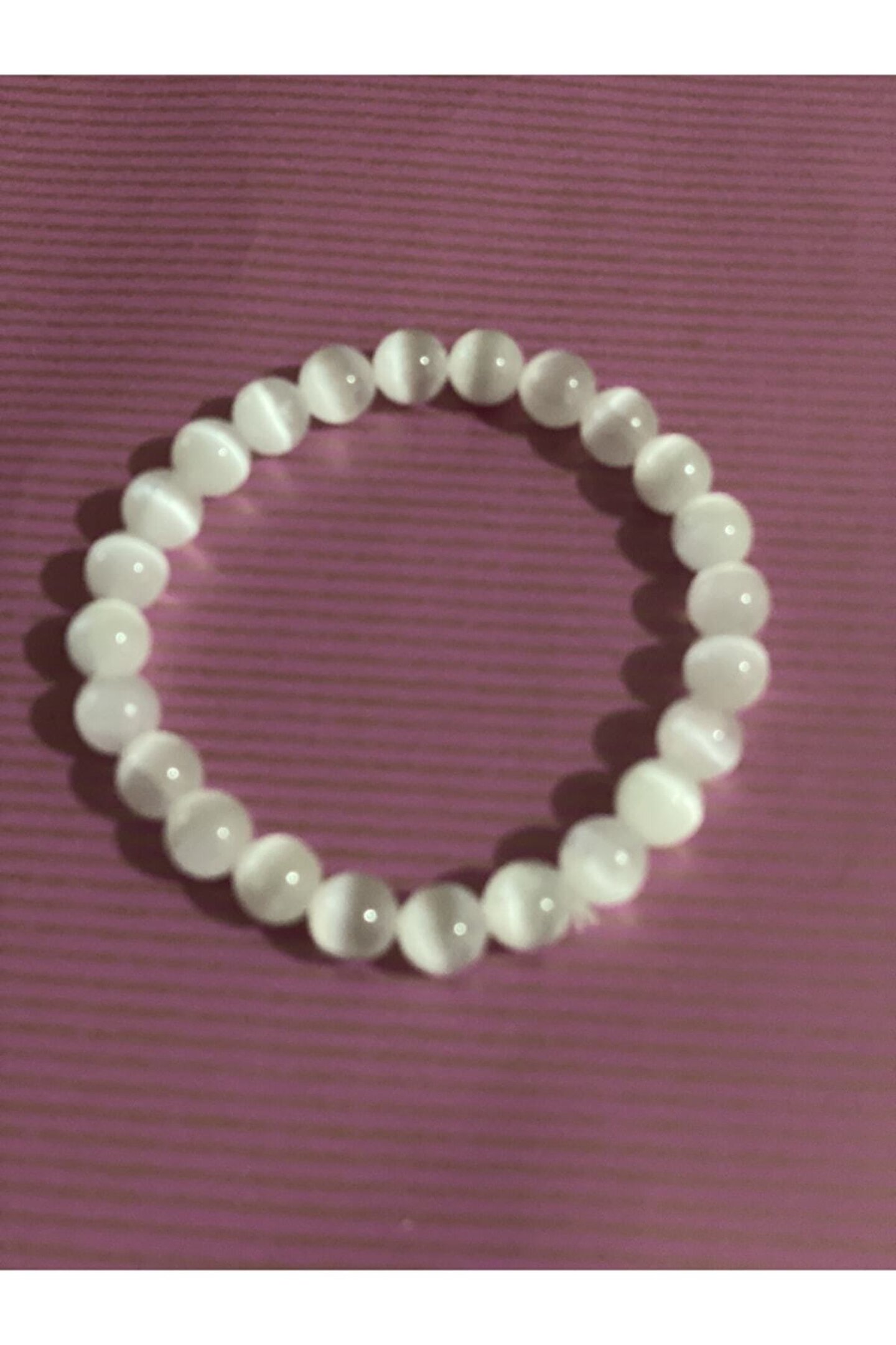 SELENİT (MELEK TAŞI) BİLEKLİK Selenit ismini, Yunan ay tanrıçası Selene’den alır.; ; Arındırıcı özelliğe sahiptir, aurayı temizler Yanına koyulduğunda, tüm taşları temizleme ve şarj etme yeteneğine sahiptir Kendine has özel bir ışığı vardır, enerjisi yüksek taşlar arasındadır.; ; Taşıyan kişiyi negatif kişilerin enerjisinden korur Olduğu yere huzur ve sükûnet getirir Meditasyon yaparken, zihni yavaşlatır, sakinleştirir şifayı hızlandırır Bedensel, ruhsal, zihinsel enerjiyi dengeler İnci Düşü enerjisi ve kişiye programlanarak gönderilecektir.;