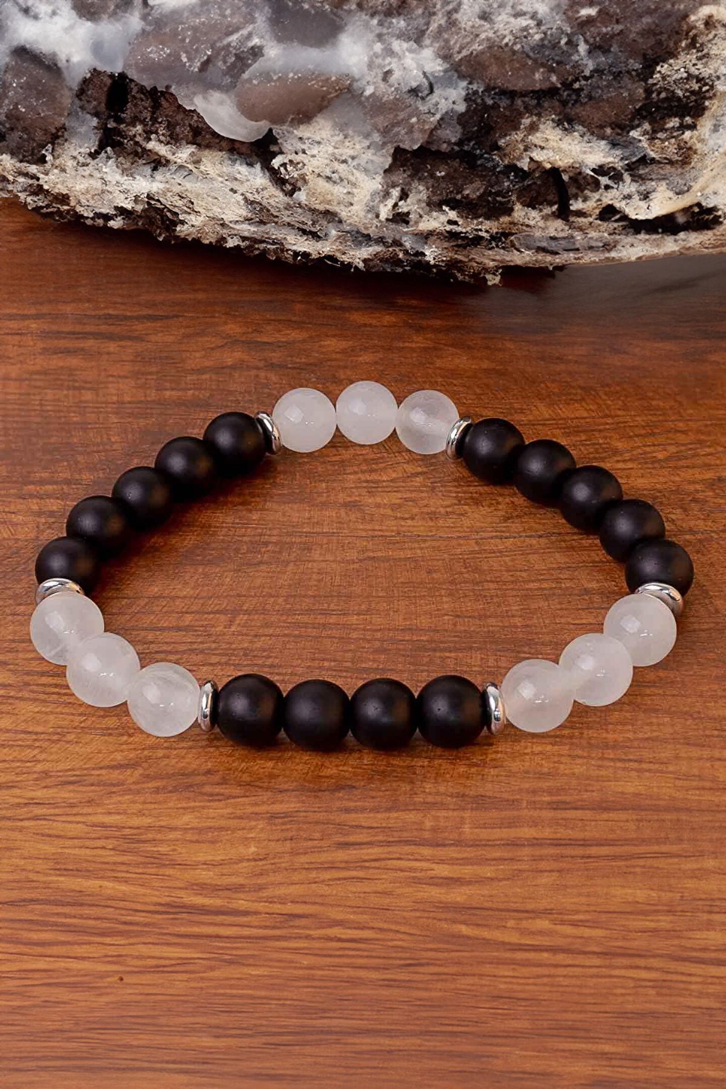 Doğal taş kullanımı sayesinde her bileklik benzersiz ve otantik bir görünüm sunar; Selenit ve oniks taşı kombinasyonu, zarif ve şık bir tasarıma sahiptir; Doğal taş materyali ile hem dayanıklılık hem de estetik bir dokunuş sağlar; Her bileklik, el yapımı olmasıyla dikkat çeker ve kişisel bir hediye olarak da tercih edilebilir;