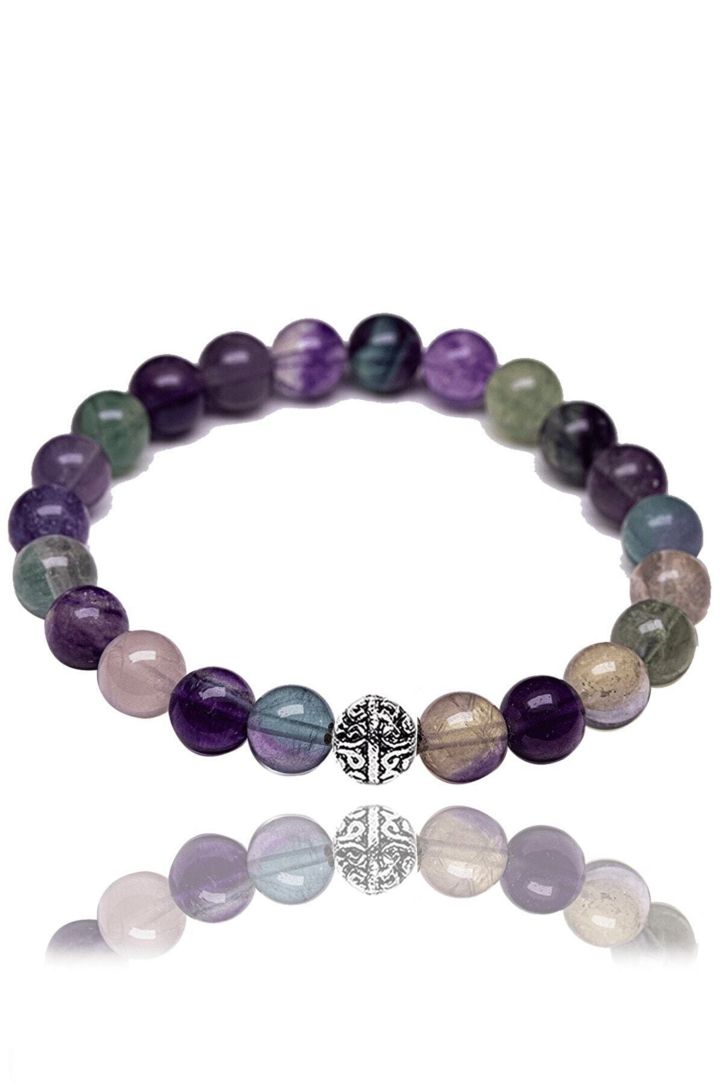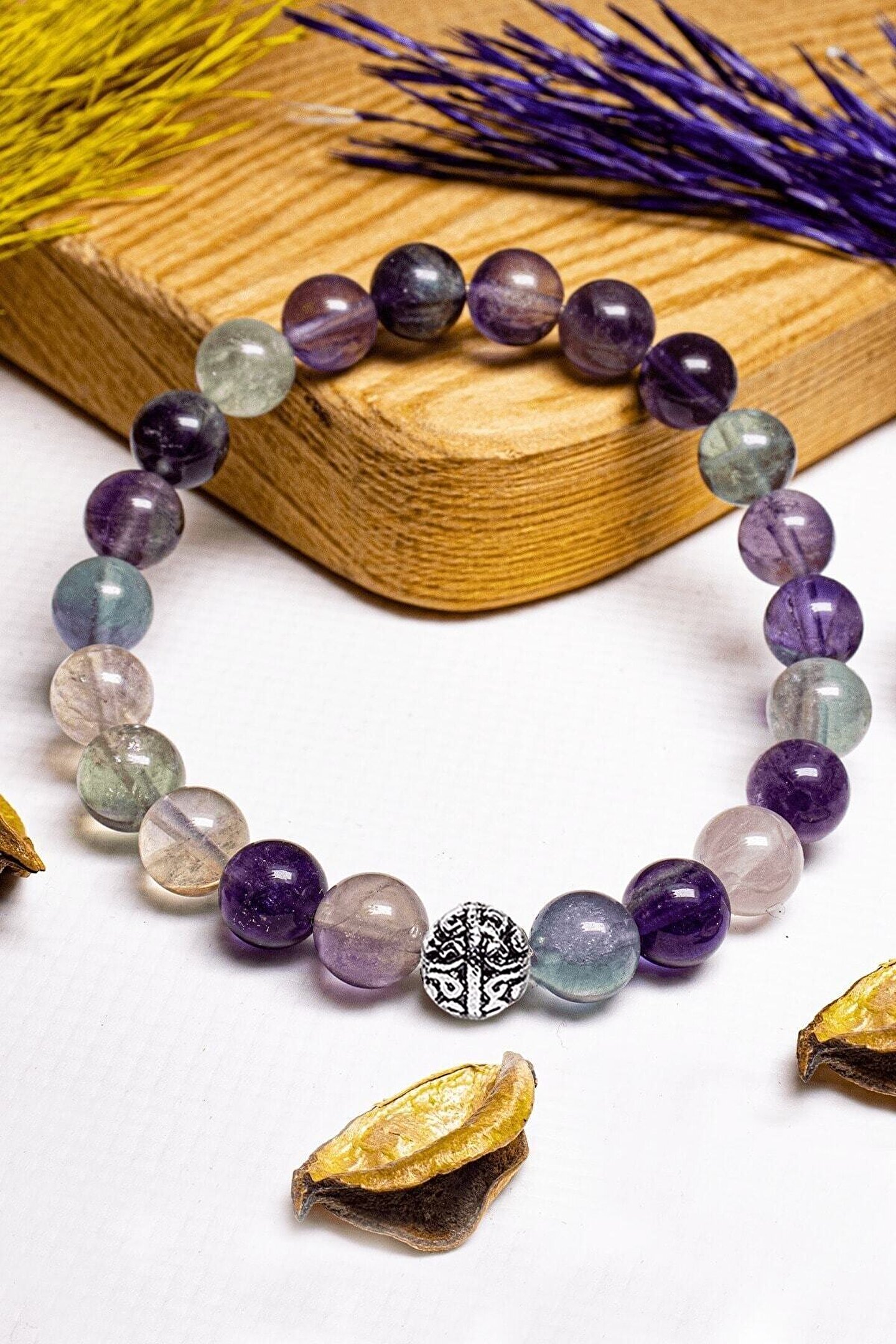 DOĞAL TAŞ CENNETİ Sertifikalı Aaa+ Kalite Florit Taşı Bileklik - Gümüş Aparatlı