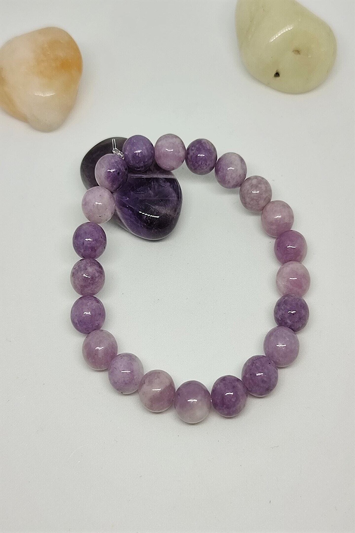 Doğal taş kullanımı sayesinde her bileklik benzersiz ve özgün bir görünüm sunar; Sertifikalı lepidolit doğaltaş bileklik, kalite ve güvenilirliği garanti eder; Doğal taşların şık ve zarif tasarımıyla günlük kullanım için idealdir; Bileklik, hem şıklığı hem de rahatlığı bir arada sunarak konforlu bir deneyim sağlar; Sertifikalı doğaltaş bileklik, uzun ömürlü kullanım için dayanıklılık ve estetik sunar;