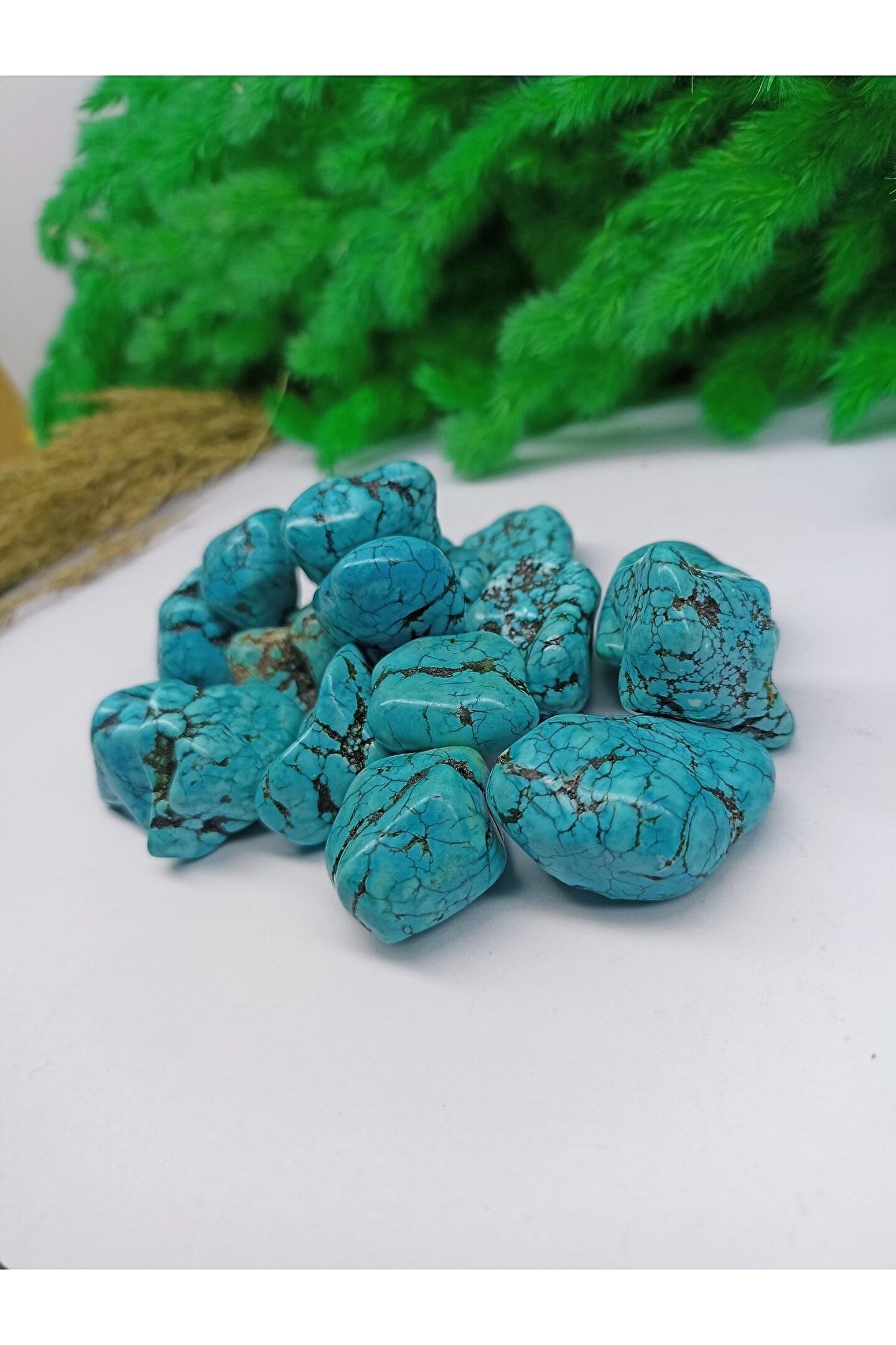 Doğal turkuaz firuze taşı, benzersiz ve otantik bir dekoratif obje arayanlar için ideal bir seçenektir; Sertifikalı yapısı ile kalite ve güvenilirlik sunar, değerli koleksiyon parçalarınız arasında yerini alır; Doğal taşların estetik güzelliğini evinizin her köşesine taşıyarak mekanınıza doğal bir dokunuş katar; Dekoratif obje olarak kullanılabileceği gibi, takı veya mücevher tasarımında da tercih edilebilir;