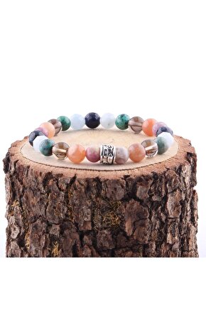 DOĞAL TAŞ CENNETİ Turmalin Güneş Taşı Dumanlı Kuvars Krizokol Akuamarin Dumortierit 8 mm Doğal Taş Bilekli