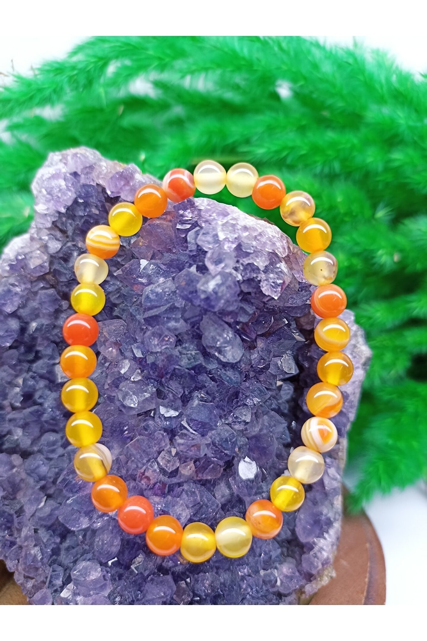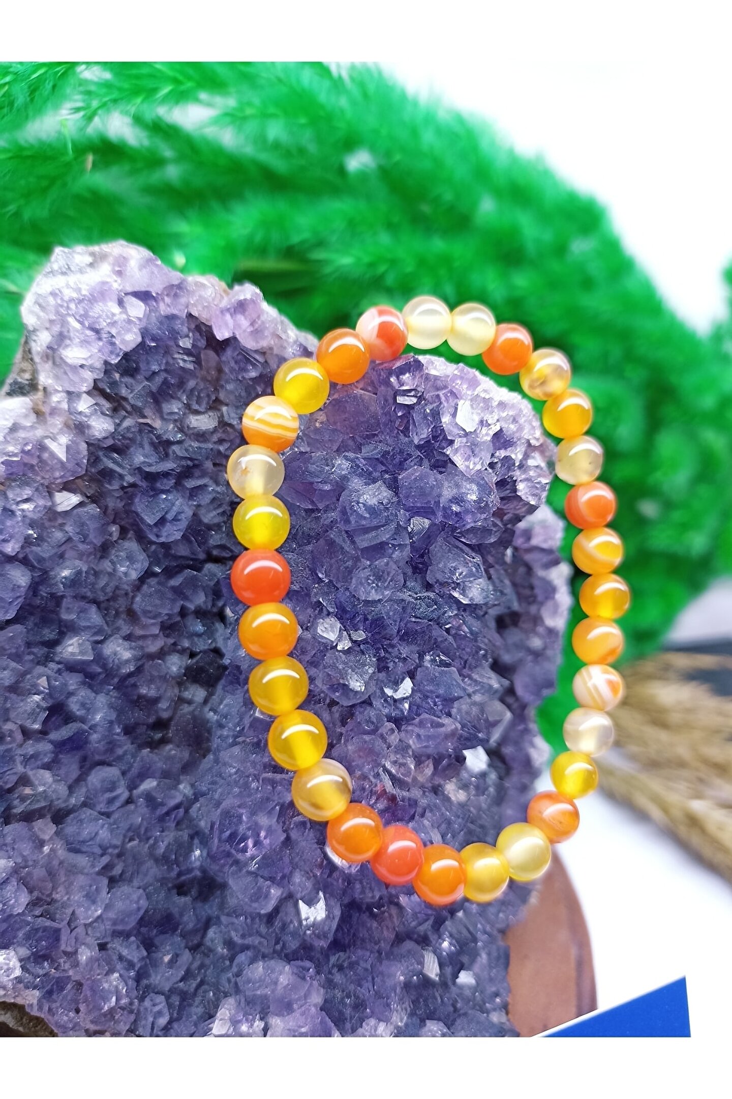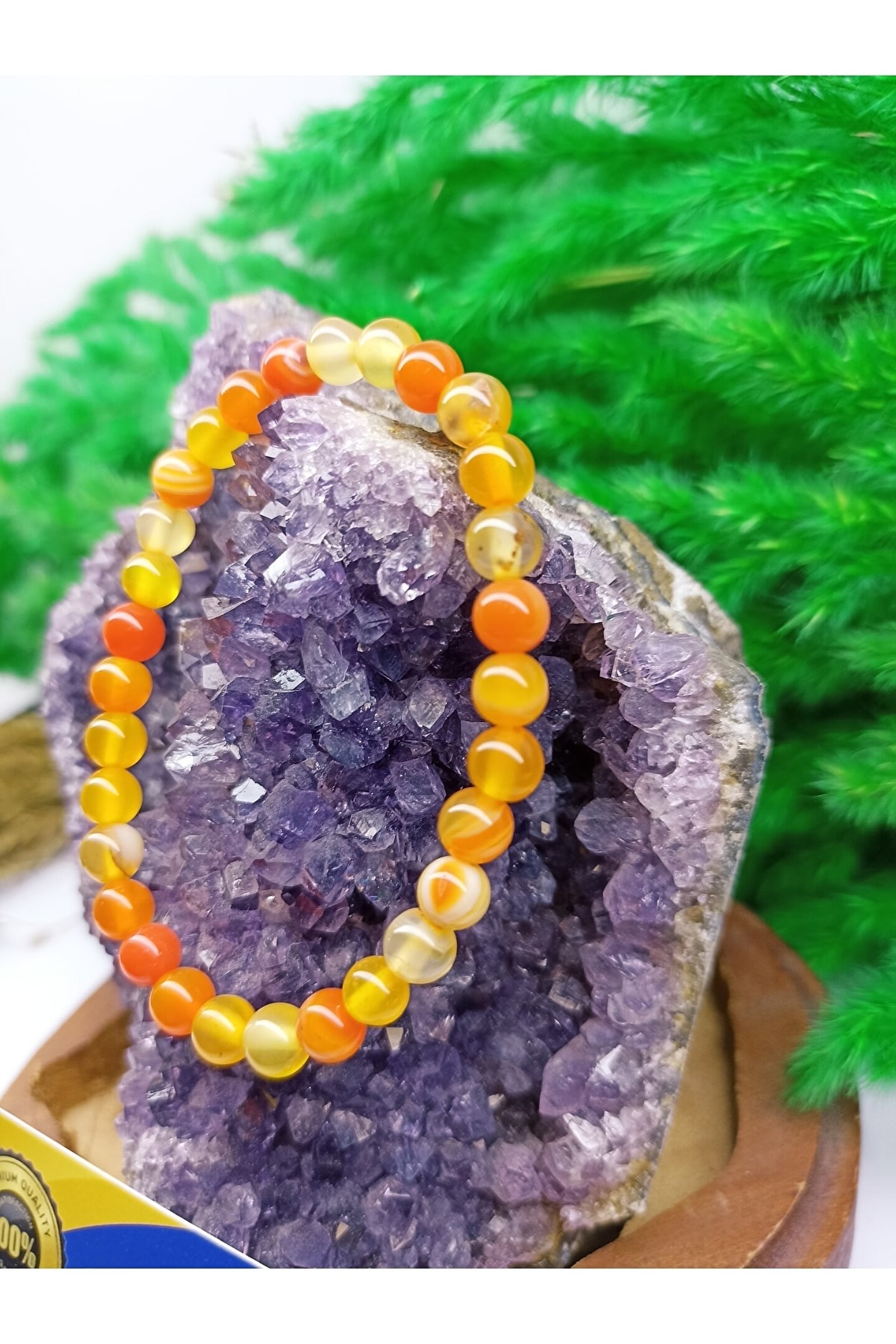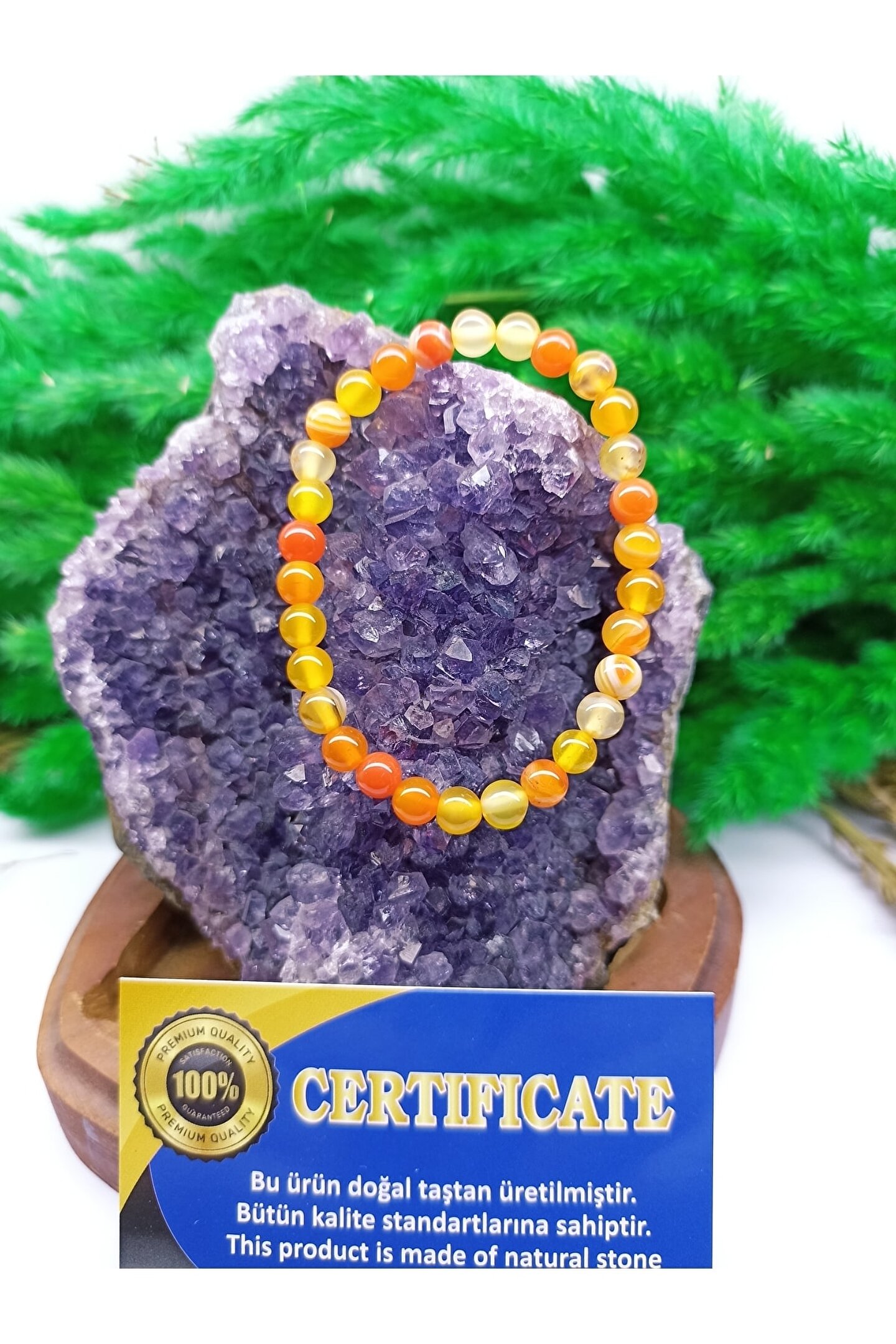 DOĞAL TAŞ CENNETİ Turuncu Madagaskar Akik Bileklik 6 Mm (sertifikalı)