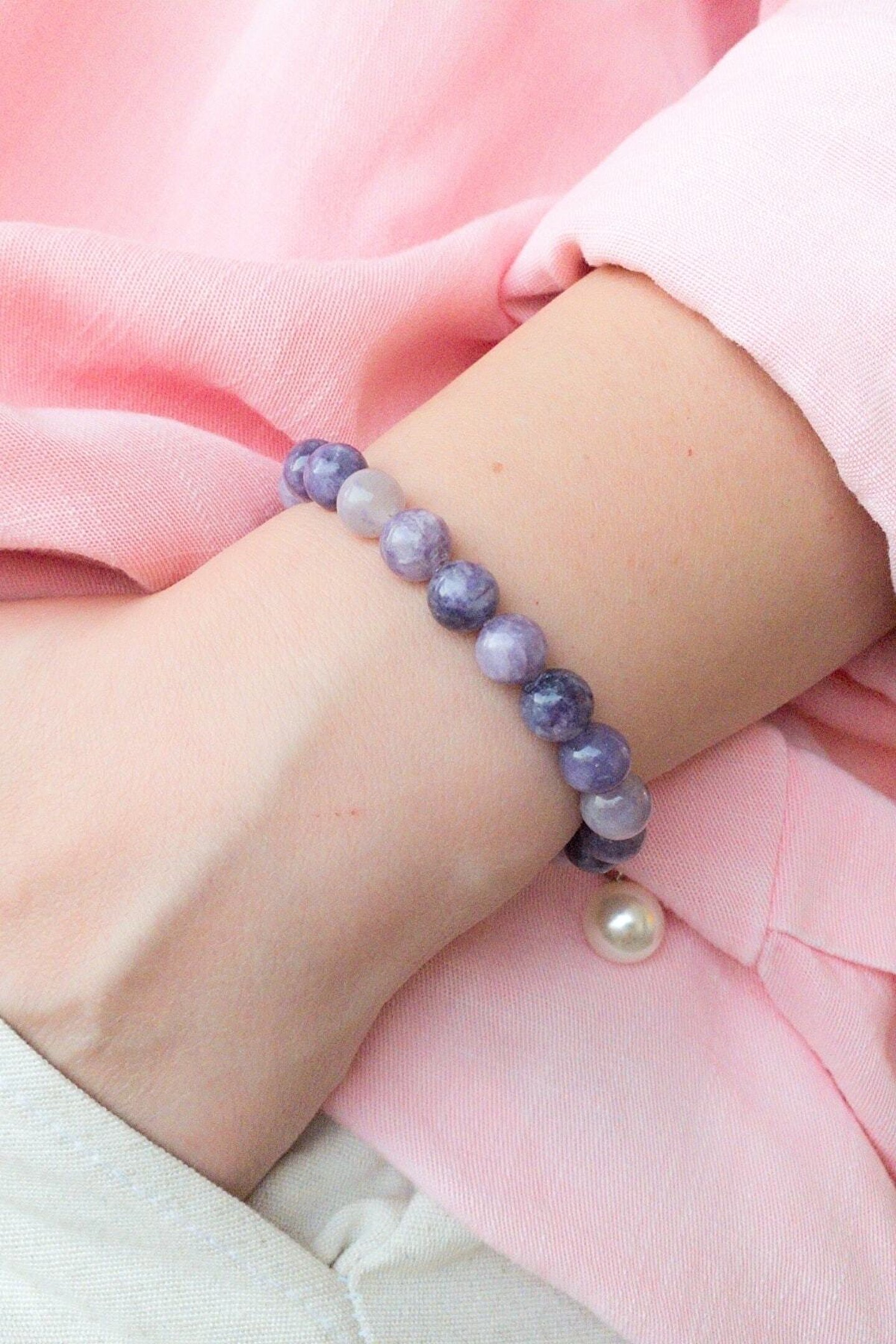 DOĞAL TAŞ CENNETİ Unisex Doğal Taş Bileklik Lepidolit 6. Alın 7. Taç Çakrası , Terazi Yay Balık Burcu Bağımlılık Taşı