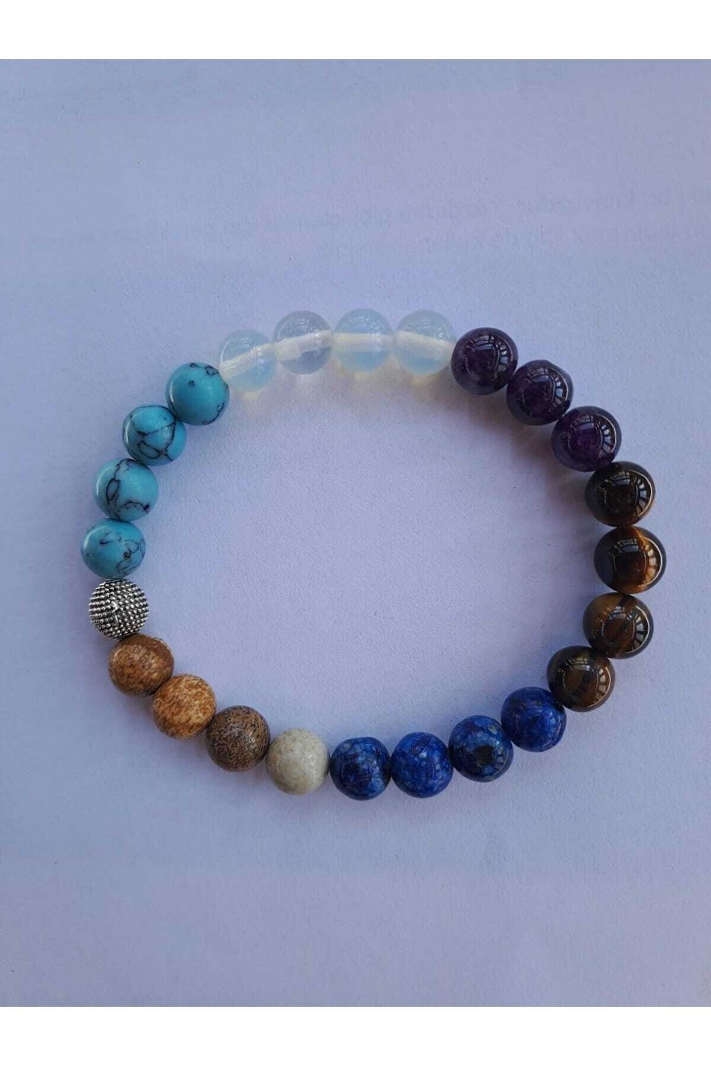 Burç bilekliklerimiz , geleneksel kabul edilen ve birbiri ile uyumlu burç taşlarından oluşturulmuşlardır.; ; Kullanılan Taşlar : Akik, Firuze, Kaplangözü, Aytaşı, Amatist, Sodalit ; Ürünlerimiz doğal taşlar kullanılarak hazırlanmaktadır.; Bilekliğimiz standart 18 cm olarak hazırlanıp, yedek lastikli misina gönderilmektedir.; ; Tane Eni: 8mm Tane Boyu: 8mm Tane Kesimi: Küre Kesim ; Ürünlerimiz doğal taş olması sebebi ile renk ve desenlerde farklılık gösterebilir.; ;