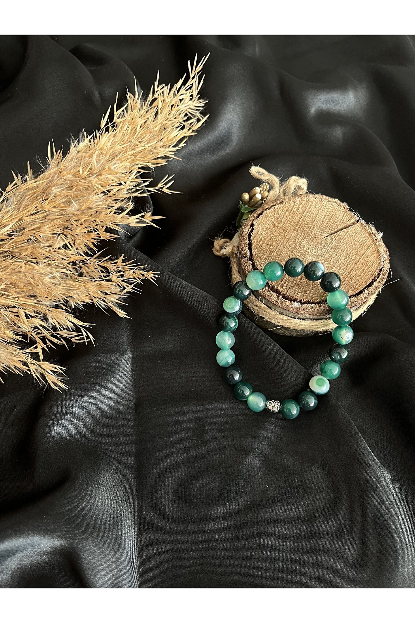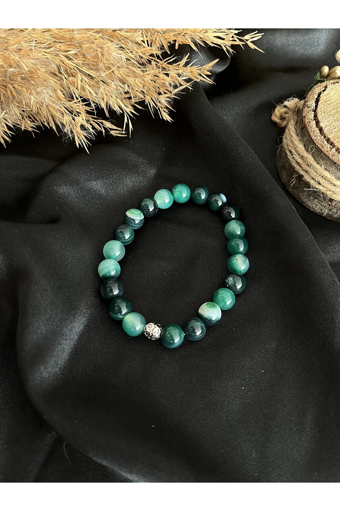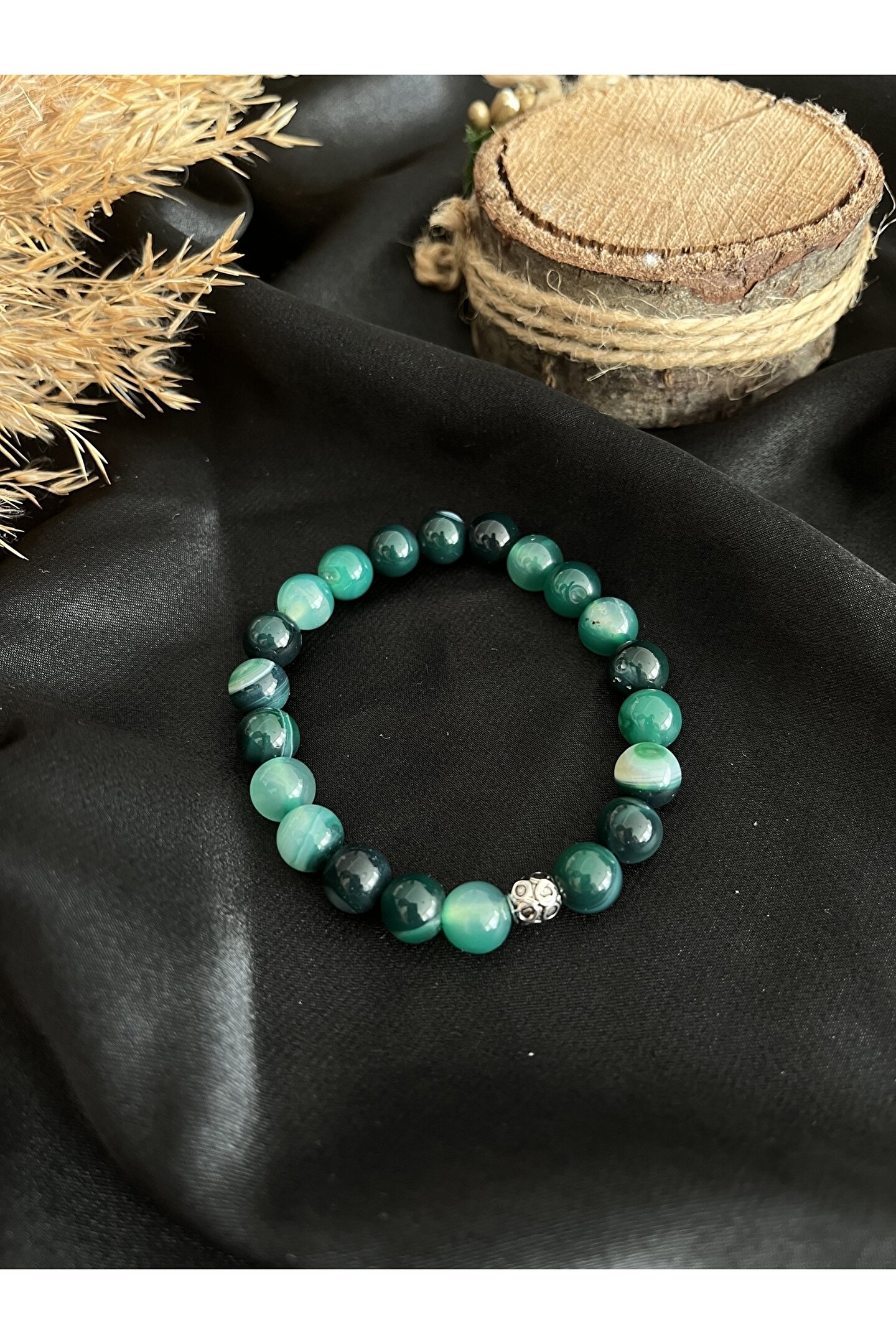 Bileklik 8 mm Yeşil Akik doğal taştan üretilmiştir.; ; Taşlarımız gerçek doğal taştır.; ; Doğal taşlar tabiatı itibariyle kendine özgü biçimdedir ve aynı taş cinslerinde dahi ufak tefek renk tonu ve biçim farklılıkları görülebilir.; ; Bu taşın doğadaki doğal oluşumuyla ilgilidir.; ; Belli aralıklarla topraklama yöntemiyle taşınızın enerjisini temizleyip taşlarınızı arındırabilirsiniz.; ; Yeşil akik taşı zihni netleştirerek karar verme mekanizmasını güçlendirmeye yarar.; ; Yeşil akik taşı tüm çakralar üzerinde etkilidir fakat yeşil rengi sebebiyle en çok Kalp çakrayı etkiler.; ; Nazara karşı koruyucudur.; ; Negatif enerjiyi pozitif enerjiye çevirir ve aurayı temizler.; ; Huzuru ve duygusal dengeyi sağlar.; ; Güçlü saldırganlık yaşayan veya aşırı duygular yaşayanlar için ideal olan bu taş dengeleyici bir yapıya sahiptir.; ; Yeşil akik, sakinleştirici titreşimi, bizi doğaya yakınlaştırmaya yardımcı olur ve modern toplumun kaosundan kopmamız gerektiğinde bir odaklanma duygusu getirebilir.;