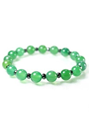 Doğal taş kullanımı, her bir bilekliğin benzersiz ve otantik bir görünüm kazanmasını sağlar; Yeşil akik taşı, bilekliğe zarif bir yeşil tonu katarken, hem şıklığı hem de doğallığı bir arada sunar; Hematit taşı ile zenginleştirilmiş bu özel tasarım, bilekliğe ekstra bir parlaklık ve sofistike bir dokunuş katar; Özel tasarım detayları, bu bilekliği sadece bir aksesuar olmaktan çıkarıp, kişisel tarzınızı yansıtan bir ifadeye dönüştürür;