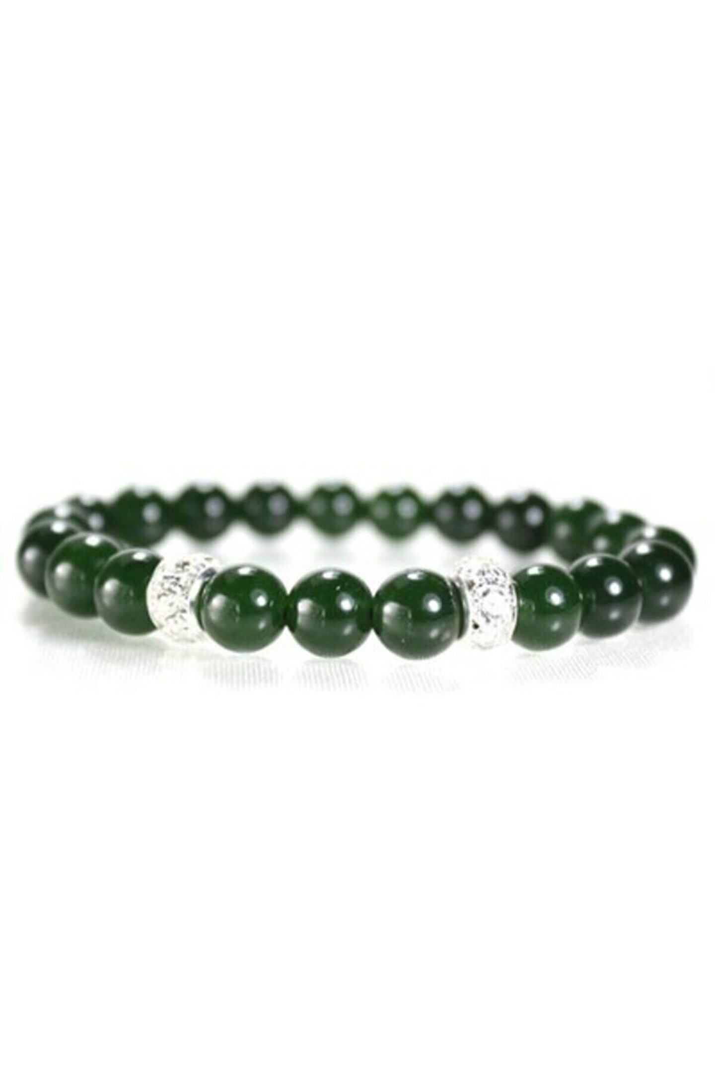 Yeşim taşı özelliklerine faset kesimli taşlar ve parlak taşlı aksesuarların ışıltısı katılınca çok iddialı şık ve zarif bir bileklik ortaya çıktı.; ; Yeşilin muhteşem cazibesini üzerinizde taşımanın haklı mutluluğuna çok yakınsınız.; ; Bileklik tane ebatları 8 mm'dir.; ; Tüm ürünlerimizle birlikte hem sevdiklerinizle birlikte gölgesinde mutlu anılar biriktirmenizi umduğumuz hem de doğanın korunmasına destek olmak amacıyla Çınar Ağacı Tohumu gönderiyoruz.; ; Siz de ülkemizin ağaçlandırılması için bize katılın.; ; #doğayısevyeşilikoru #birağaçherşeyideğiştirebilir;