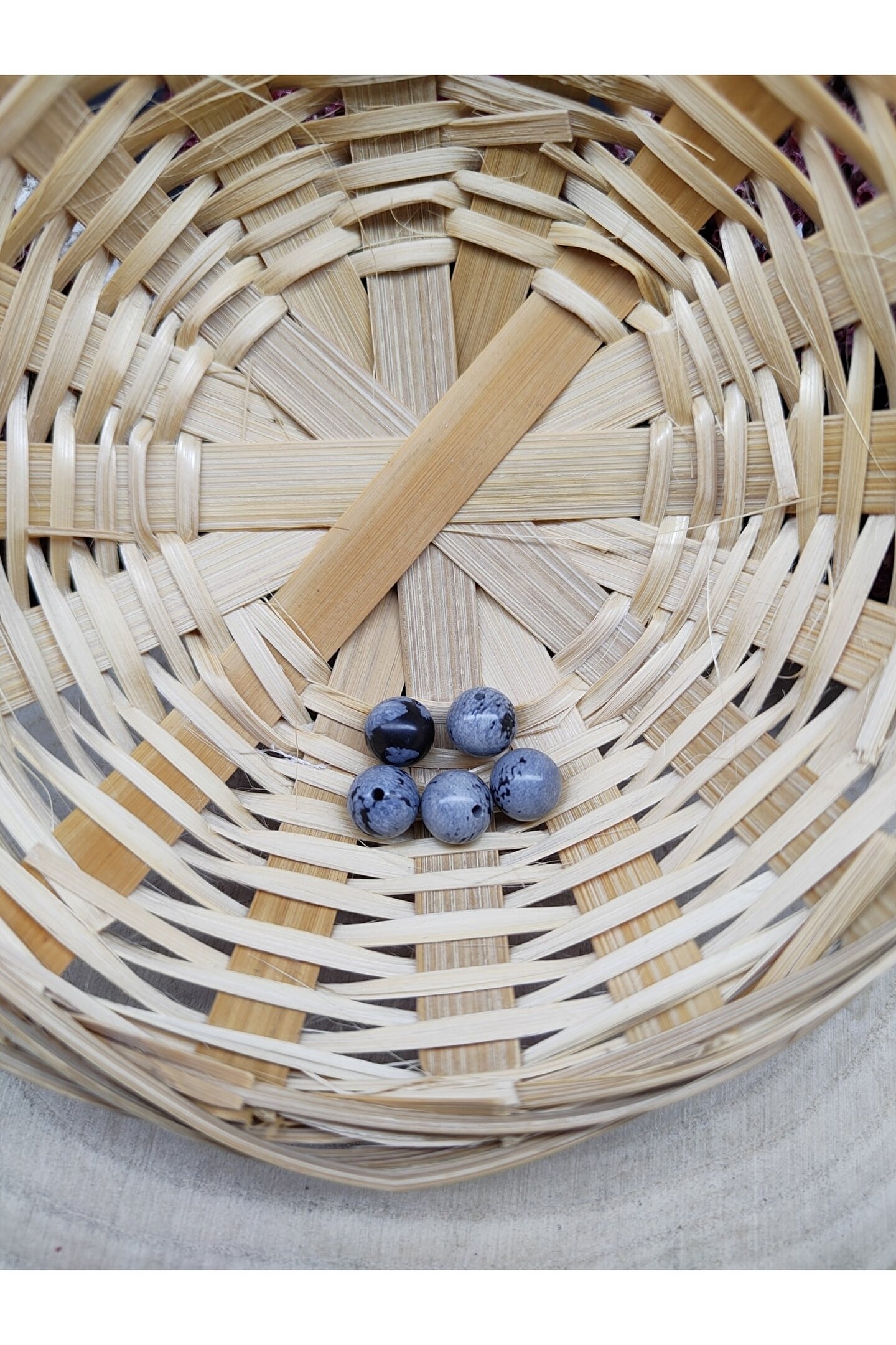 DOĞAL TAŞ DELİSİ 5 Adet Karlı Obsidyen Doğal Taş Boncuk (8 Mm) (sertifikalı)