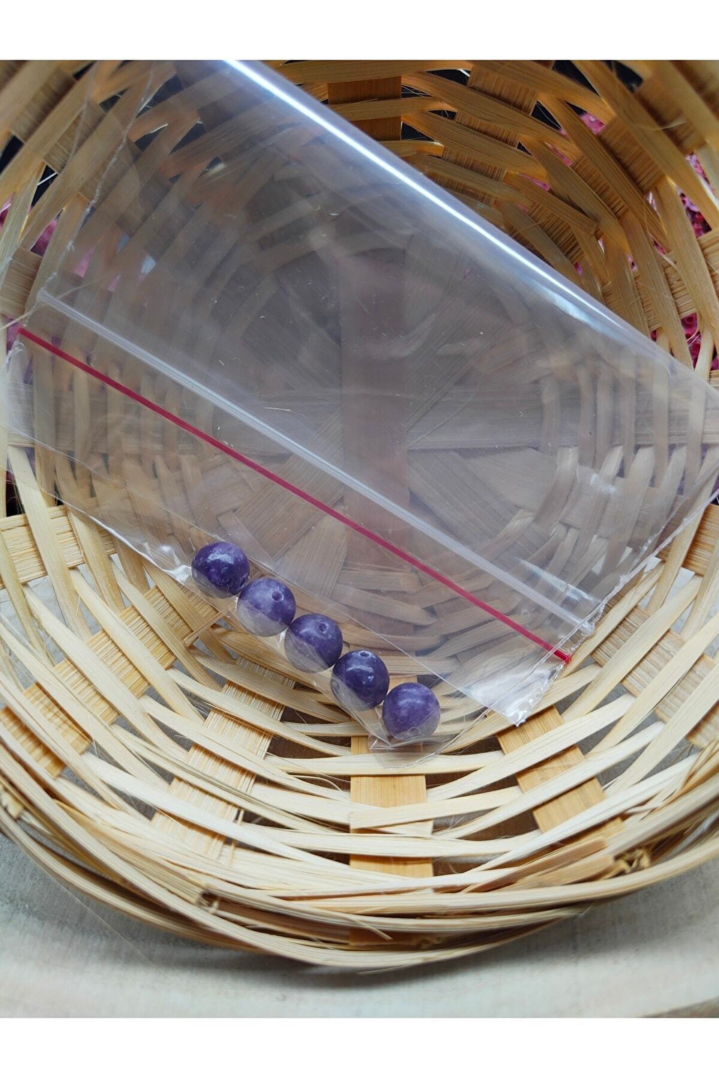 DOĞAL TAŞ DELİSİ 5 Adet Lepidolit Doğal Taş Boncuk (8 MM)