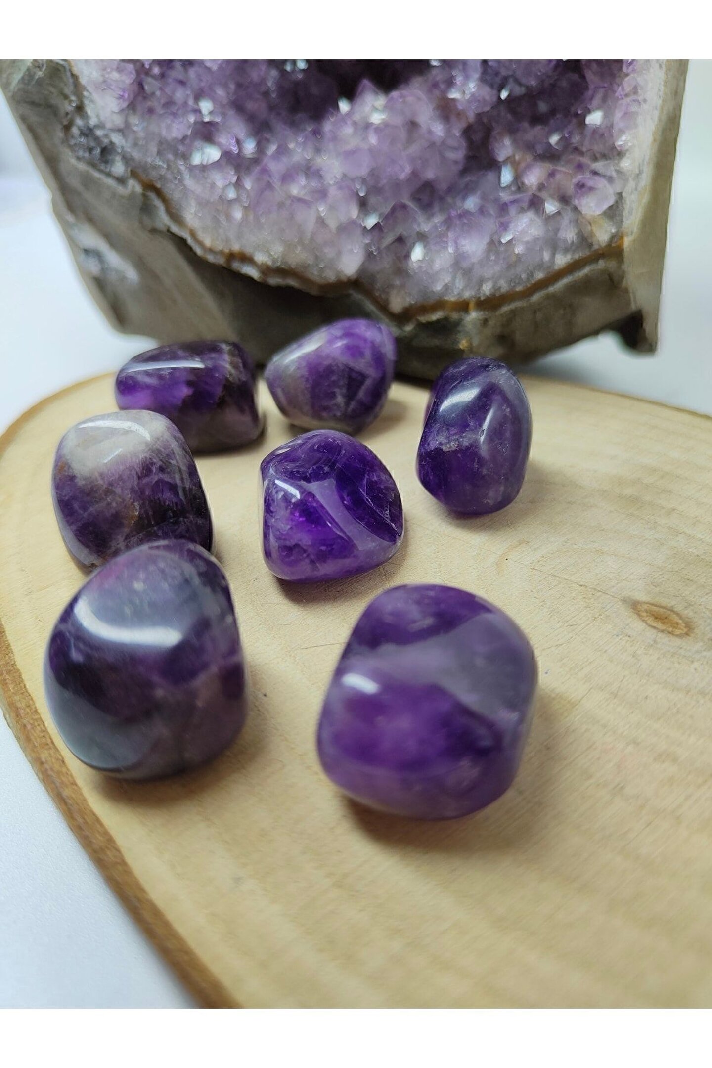 Ürün doğal taş olduğu için renk ve boyutlar küçük farklılıklar gösterebilir.; Doğal Ametist taşı, her bir parça benzersiz ve eşsiz bir görünüm sunar; Doğa severler için ideal bir dekoratif obje olan bu tımbıl, evinizin veya ofisinizin atmosferini doğal bir dokunuşla zenginleştirir; Tek parça halinde gelen bu ürün, minimalist ve sade tasarımıyla dikkat çeker;