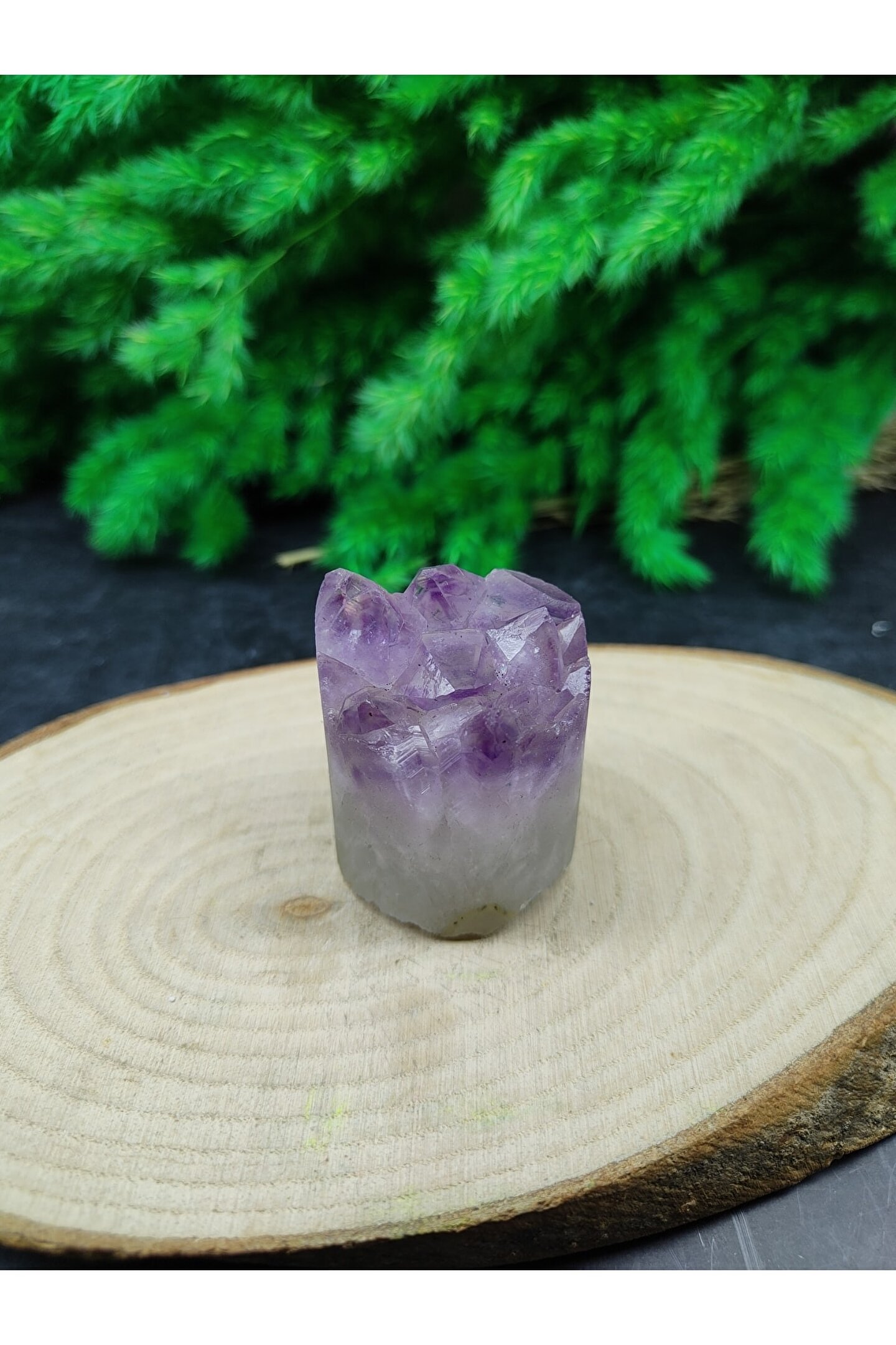 Doğal Ametist taşı, doğanın saf güzelliğini evinize taşıyan dekoratif bir objedir; Ham silindir formu, modern ve minimalist dekorasyon tarzlarına uyum sağlar; Ametist taşı, enerji verici özellikleri ile mekanınıza pozitif bir atmosfer katar;