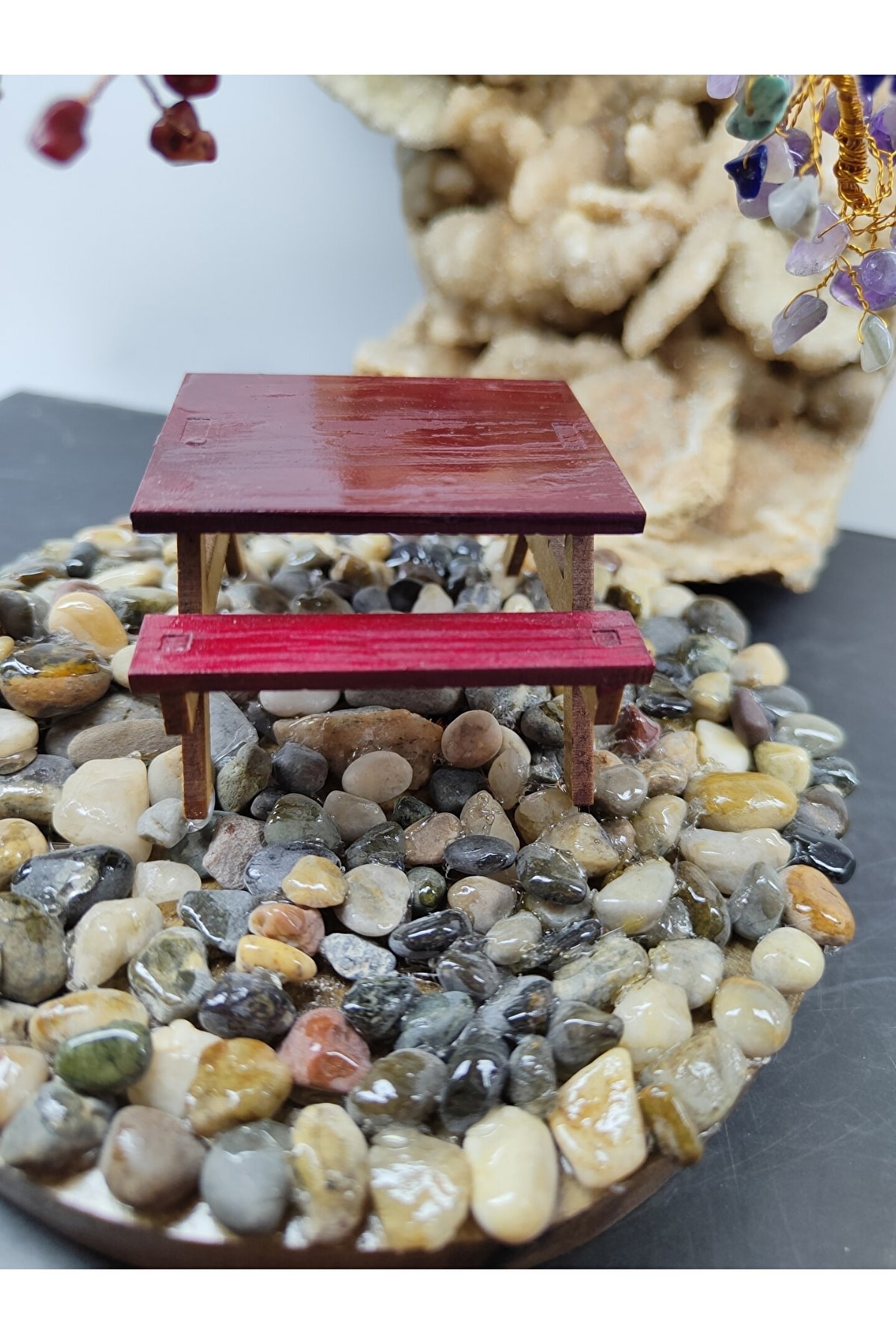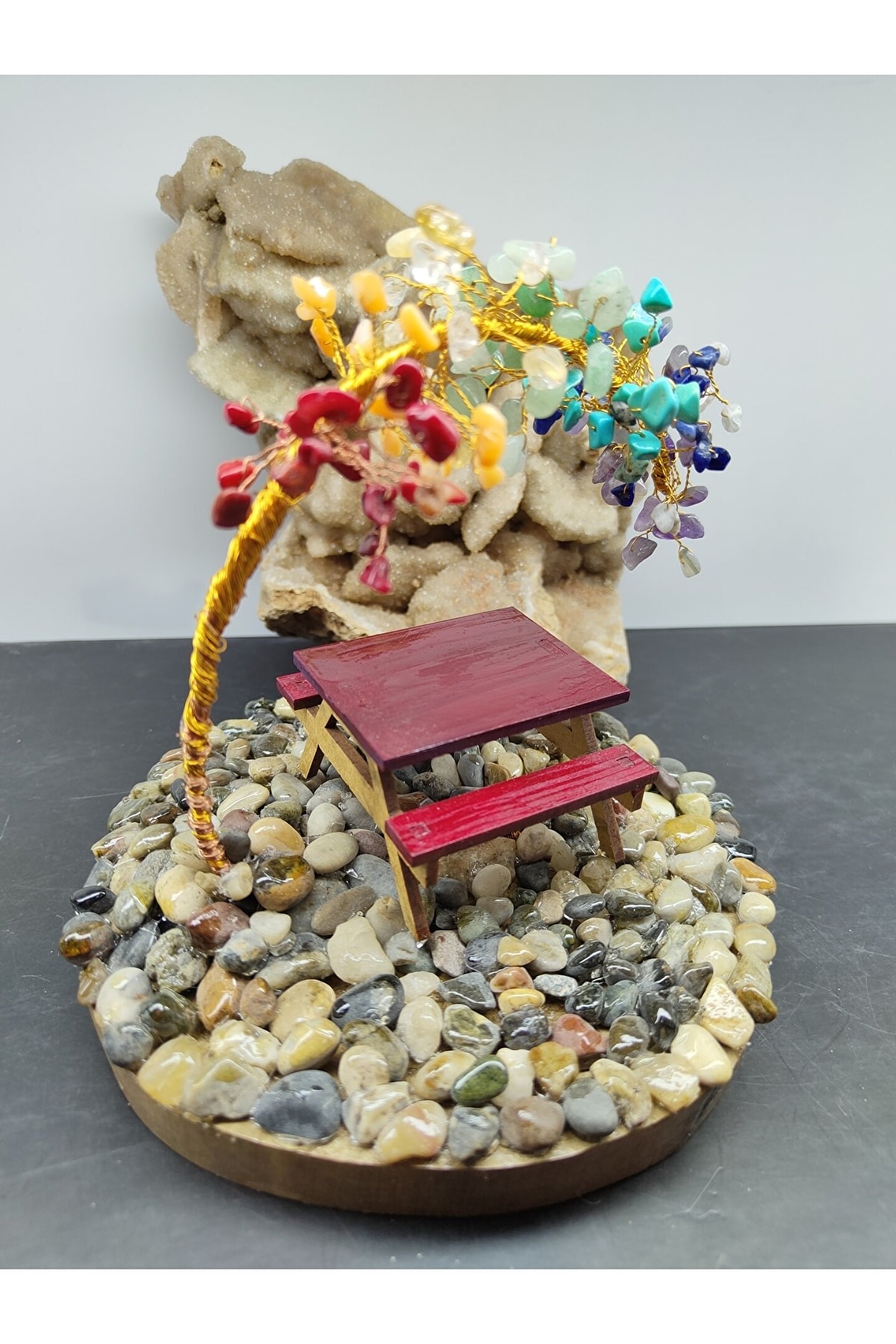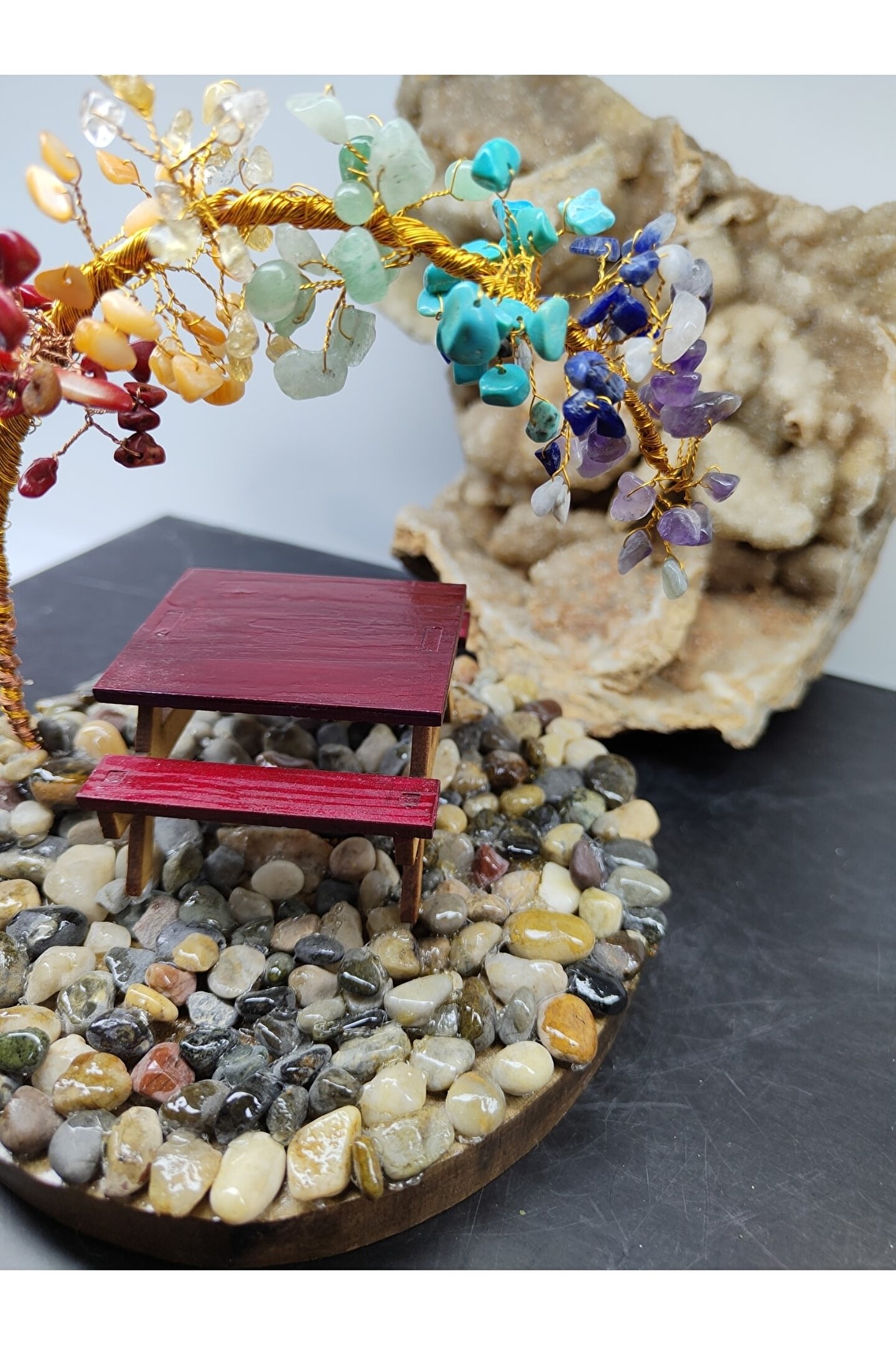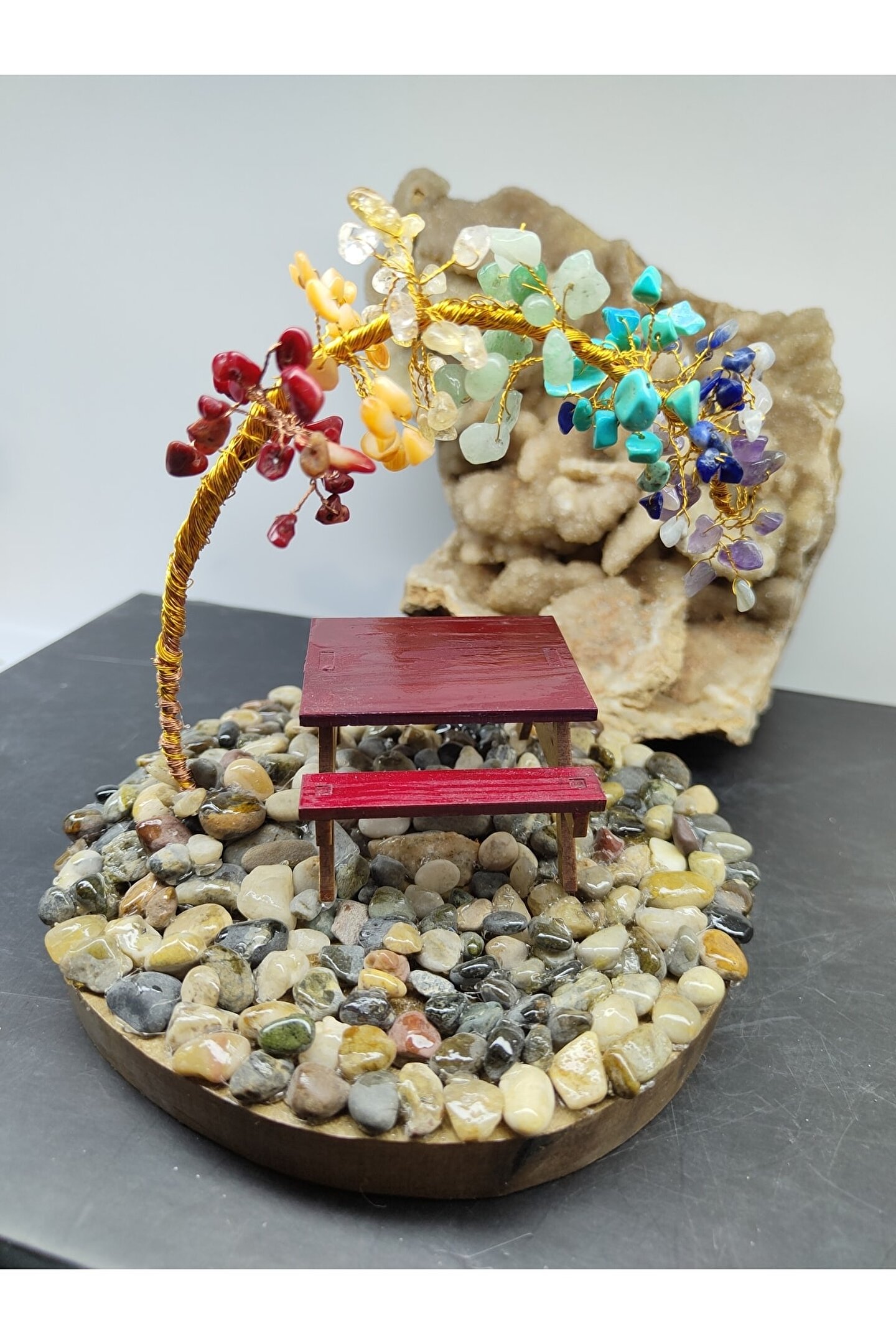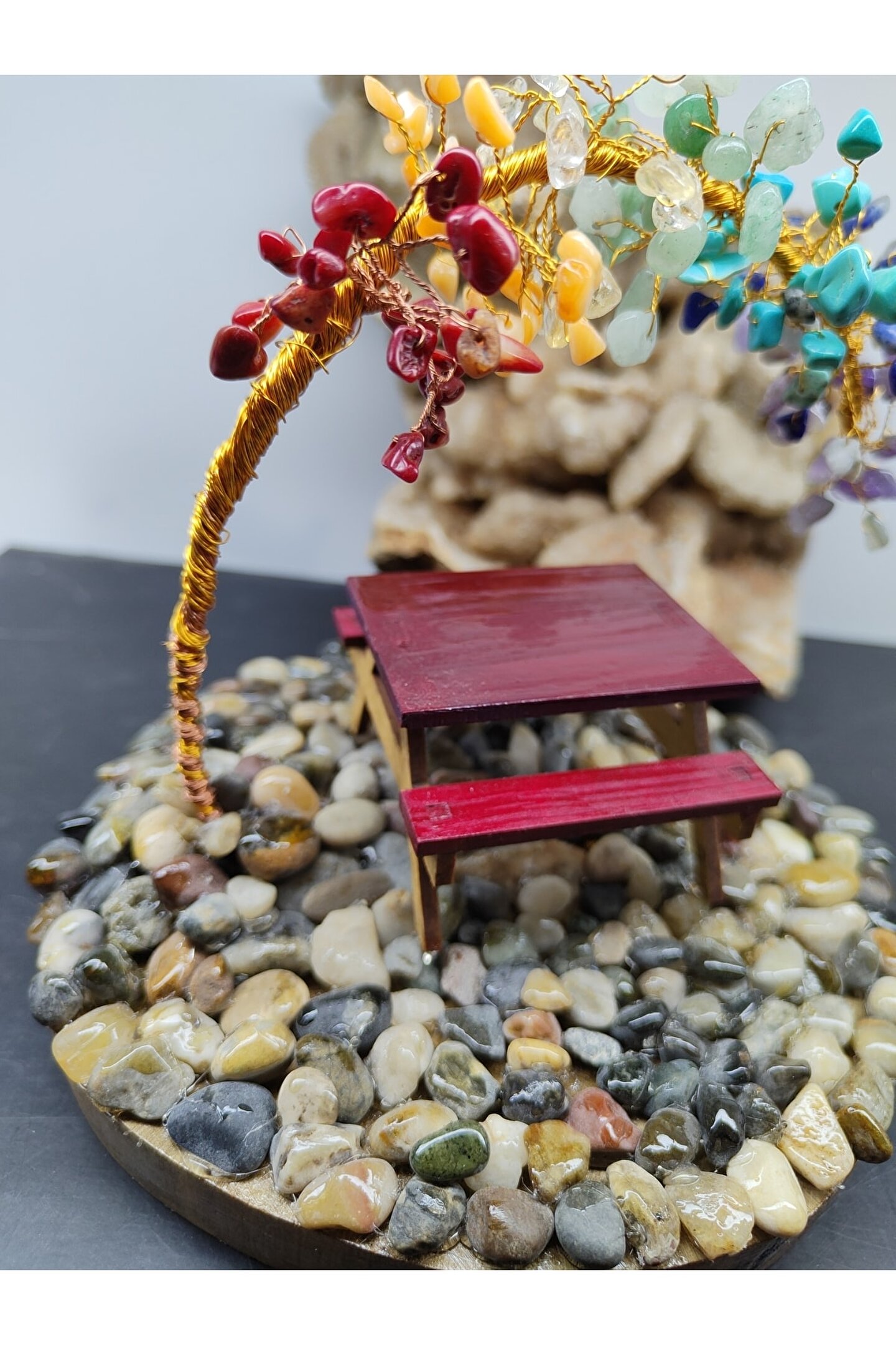 ÇAKRA TAŞI (DEKORATİF AĞAÇ) YAKLAŞIK UZUNLUK: 13 SANTİM (CM) YAKLAŞIK EN: 14 SANTİM (CM) ---ÖZELLİĞİ--- İçerisindeki taşlar: Ametist, Sodalit, Turkuaz, Aventurin, Sitrin, Kalsit, Mercan. ; Çakra Taşı Ağaç kristaller ve doğal taşlar, ruhsal, bedensel, zihinsel ve enerjisel boyutta, mekânların temizlenmesinde ve farklı pek çok alanda etkili olabilirler. ; Çakra taşları, çakranın doğal iyileşme sürecini destekleyen, çeşitli renklerde farklı taş türleridir. ; İnsan vücudundaki çakraların belirli renkleri vardır ve bu renkler, çakralar gerektiği gibi çalışmadığında değişir. ; Ortamda bulundurmayı kolaylaştırmak için çakra renklerinden hazırlanmış olan çakra ağacı, ortamın pozitif enerjisinin artmasına destek olacaktır. ; TÜM ÜRÜNLERİMİZ 30 YILLIK DOĞAL TAŞ ŞİRKETİMİZ TARAFINDAN ORJİNAL VE DOĞALLIK SERTİFİKALARIYLA GELİR...;