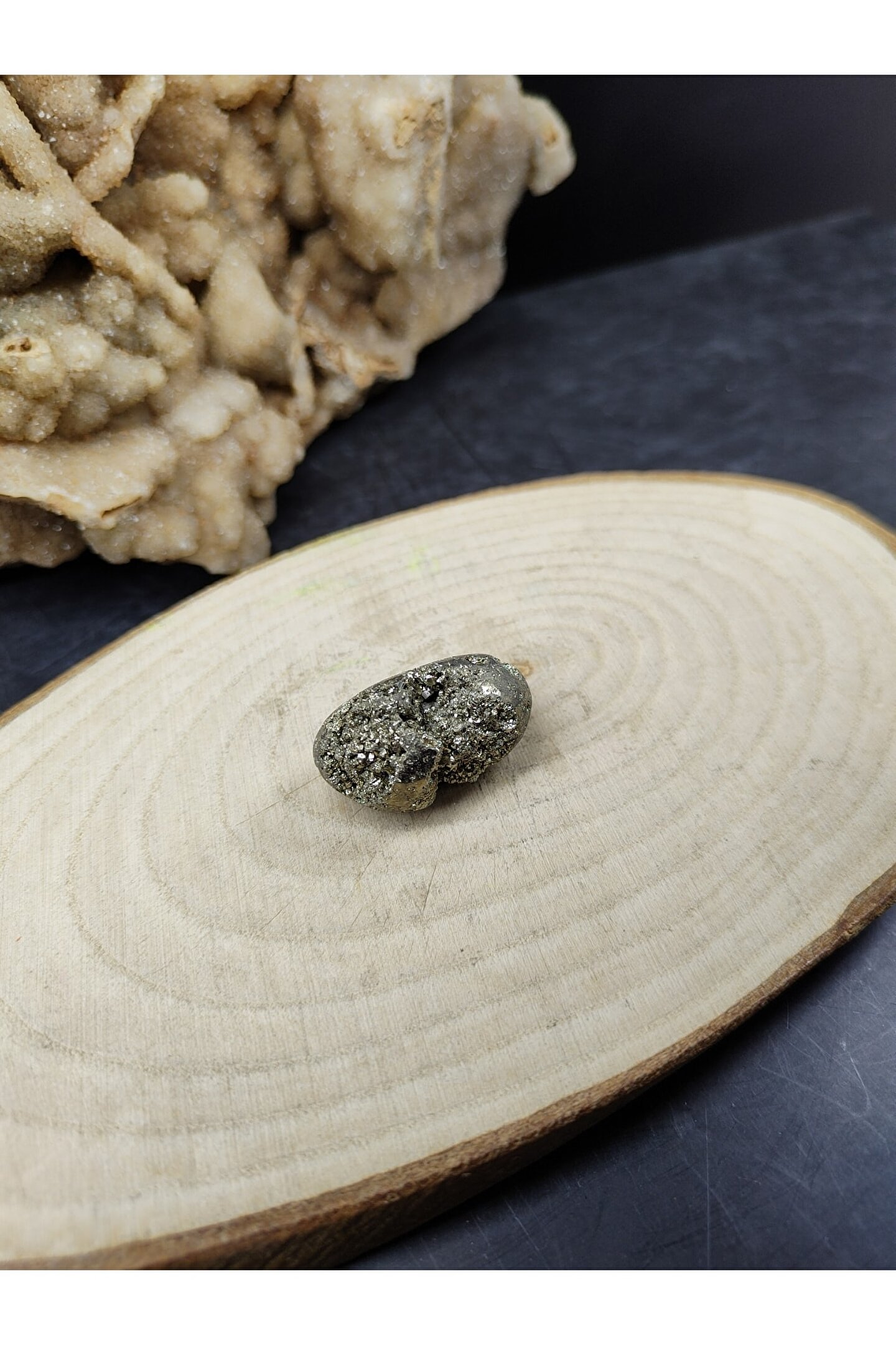 Doğal ham pirit taşı, doğanın saf güzelliğini ev ve ofis dekorasyonunuza taşır; Sertifikalı ürünümüz, kalite ve güvenilirlik açısından sizi temin eder; Dekoratif objelerinizde doğal bir dokunuş yaparak mekanınıza otantik bir hava katar; Ham pirit taşı, benzersiz desenleri ve renkleriyle her türlü dekorasyon stiline uyum sağlar;