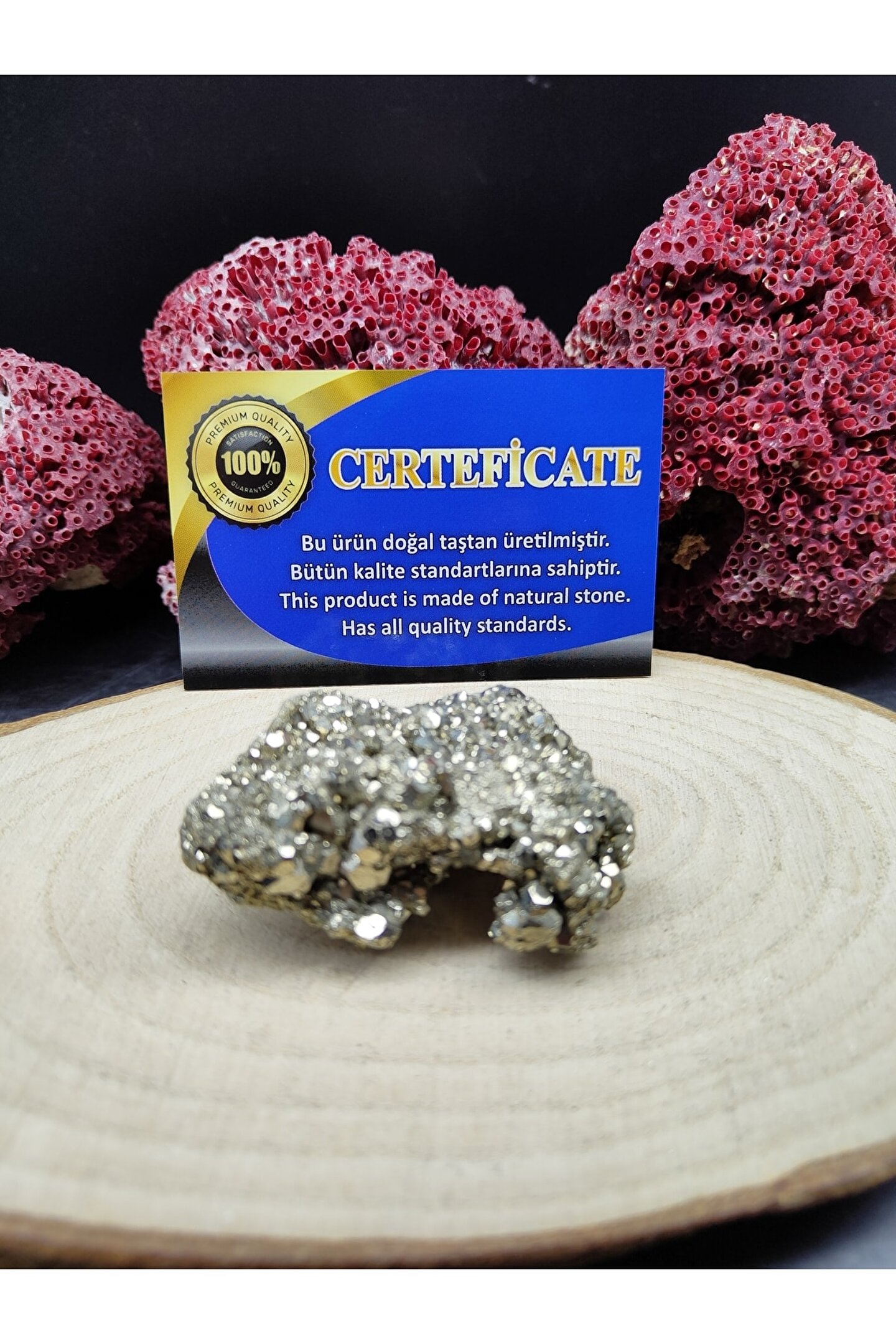 Doğal Pirit ham taş, doğanın saf güzelliğini evinize taşır ve dekoratif objelerinizle uyum sağlar; Sertifikalı yapısı ile kalite ve güvenilirlik sunar, uzun ömürlü kullanım vaat eder; Doğal taşların eşsiz dokusu ve renkleri, mekanınıza otantik bir hava katar;