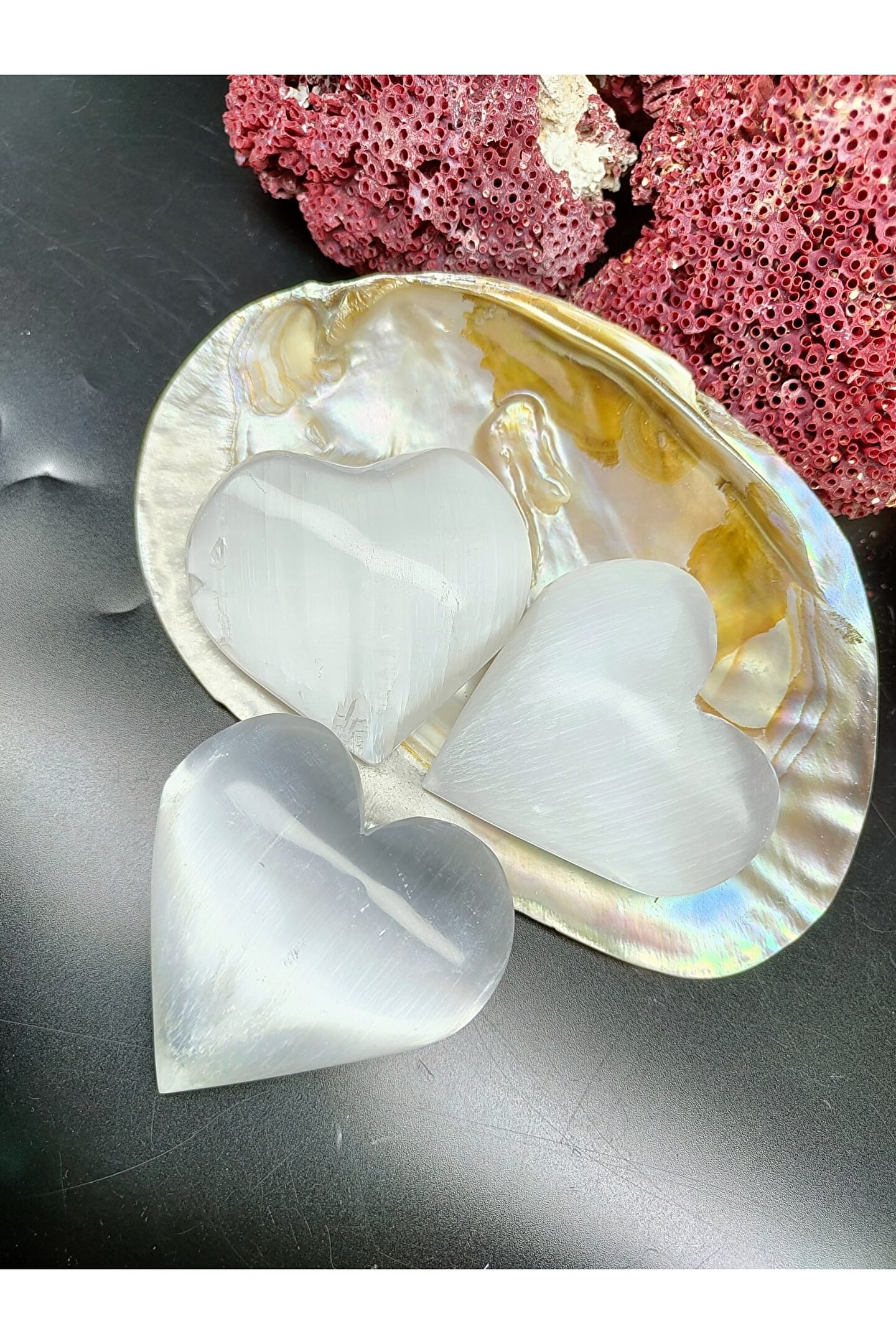 DOĞAL TAŞ DELİSİ Selenit Kalp Dekoratif Doğal Taş (sertifikalı) (1 Adet)