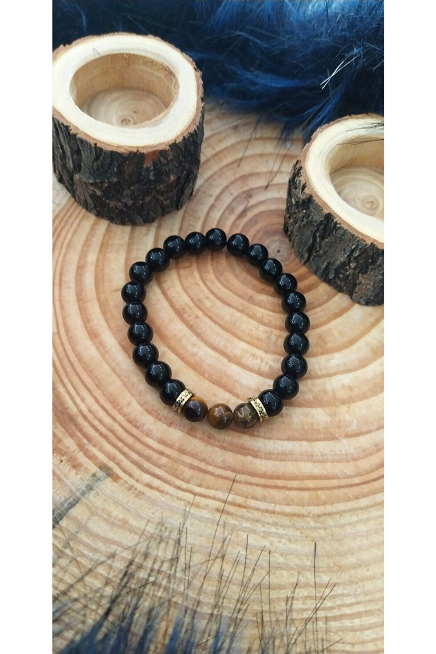 Doğal oniks taşı, bileğe şık bir dokunuş katarken, kaplan gözü boncukları ile dikkat çekici bir görünüm sunar.; Oniks taşının dayanıklılığı ve parlak yüzeyi, günlük kullanım için idealdir.; Kaplan gözü boncuklarının mistik ve gizemli özellikleri, bilekliğe benzersiz bir karakter kazandırır.; Bijuteri bileklik, hem gündelik kullanımda hem de özel günlerde tercih edilebilir.; Doğal taş kullanımı sayesinde her parça benzersizdir ve kişisel tarzınıza özgünlük katar.;