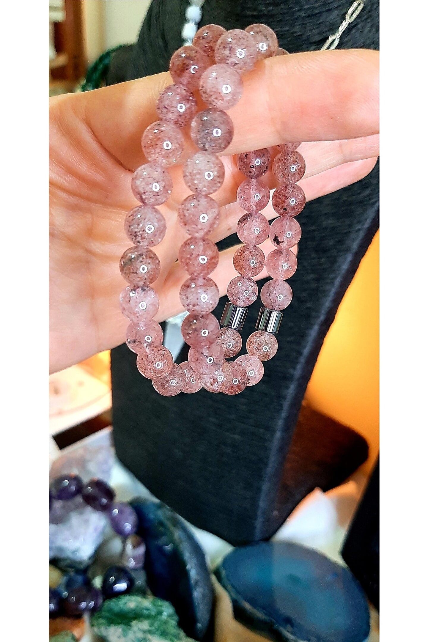 Doğal taş kullanımı sayesinde her bileklik benzersiz ve otantik bir görünüm sunar; Antalya çilek kuvars taşı, bileklikte doğal güzelliği ve zarafeti ön plana çıkarır; Bu bileklik, hem günlük kullanım hem de özel günler için ideal bir aksesuar seçeneği olarak öne çıkar;