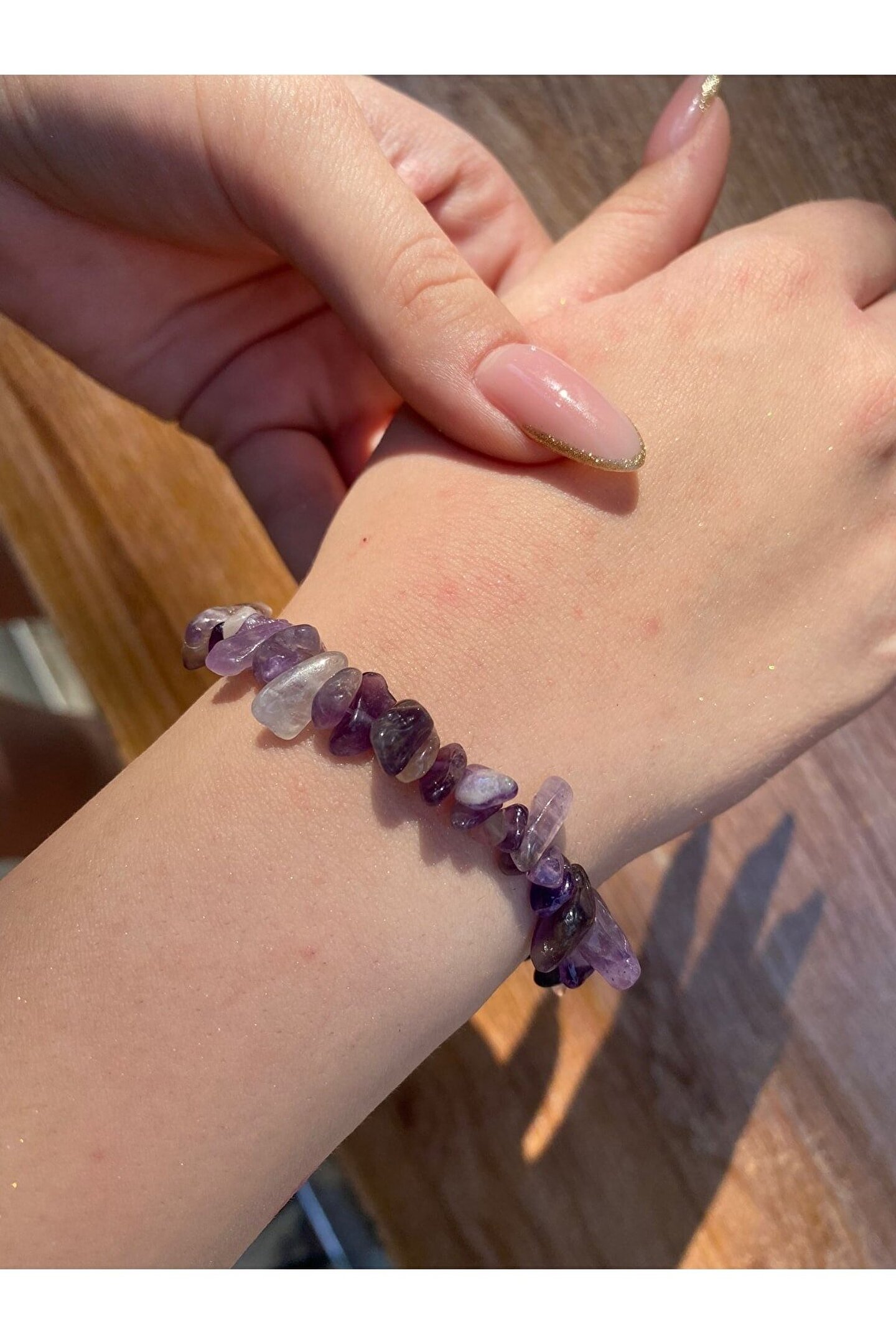 - Doğal ametist taşı kullanılarak üretilmiş, şıklığı ve zarafeti bir arada sunan bileklik; - Doğal taş materyali sayesinde her bileklik benzersiz ve otantik bir görünüm kazandırır; - Ametist taşı, sakinleştirici etkisiyle bilinir ve günlük kullanım için ideal bir aksesuar seçeneği sunar;