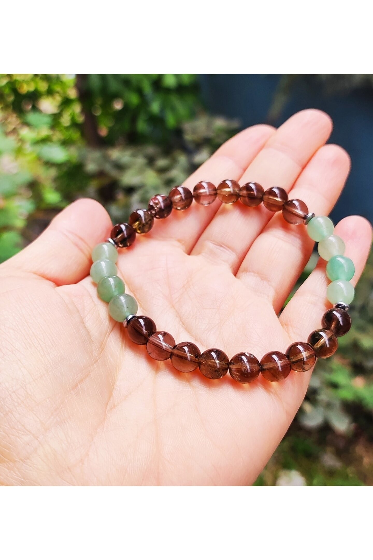 Doğal taş kullanımı sayesinde her bileklik benzersiz ve otantik bir görünüm sunar; Dumanlı kuvars ve aventurin taşı, şıklığı ve zarafeti bir arada sunarak her kıyafetle uyum sağlar; 8 mm boyutundaki bu bileklik, hem günlük kullanım hem de özel günler için idealdir; Doğal taş materyali ile hem dayanıklılık hem de estetik bir dokunuş sağlar;