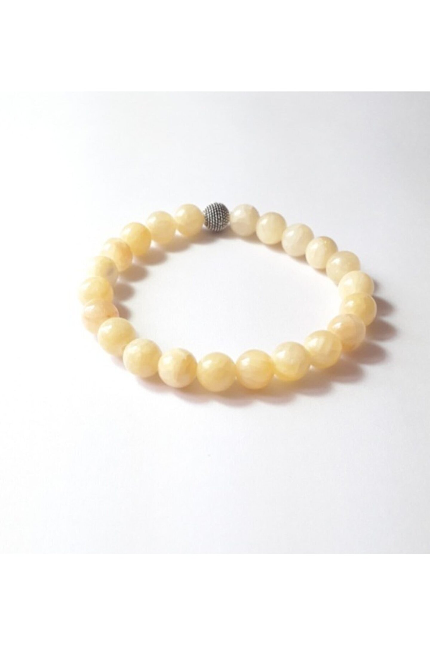 Kalsit taşı kullanılarak üretilmiş doğal taş bileklik, doğanın güzelliğini parmak uçlarınıza taşır.; Doğal kalsit taşı sayesinde benzersiz bir şıklık ve zarafet sunan bu bileklik, günlük kullanımda rahatlıkla tercih edilebilir.; Taşın doğal yapısı nedeniyle her biri kendine özgü desenlere sahip olan kalsit bileklikler, kişisel tarzınızı yansıtırken doğanın enerjisini de yanınızda taşımanızı sağlar.; Doğal taşların sunduğu pozitif enerjilerle donatılmış bu bileklik, hem kendinize hem de sevdiklerinize huzur ve mutluluk getirir.; Kalsit taşıyla zenginleştirilmiş bileklik, hem günlük kullanım için idealdir hem de özel günlerde şık aksesuar olarak tercih edilebilir.;