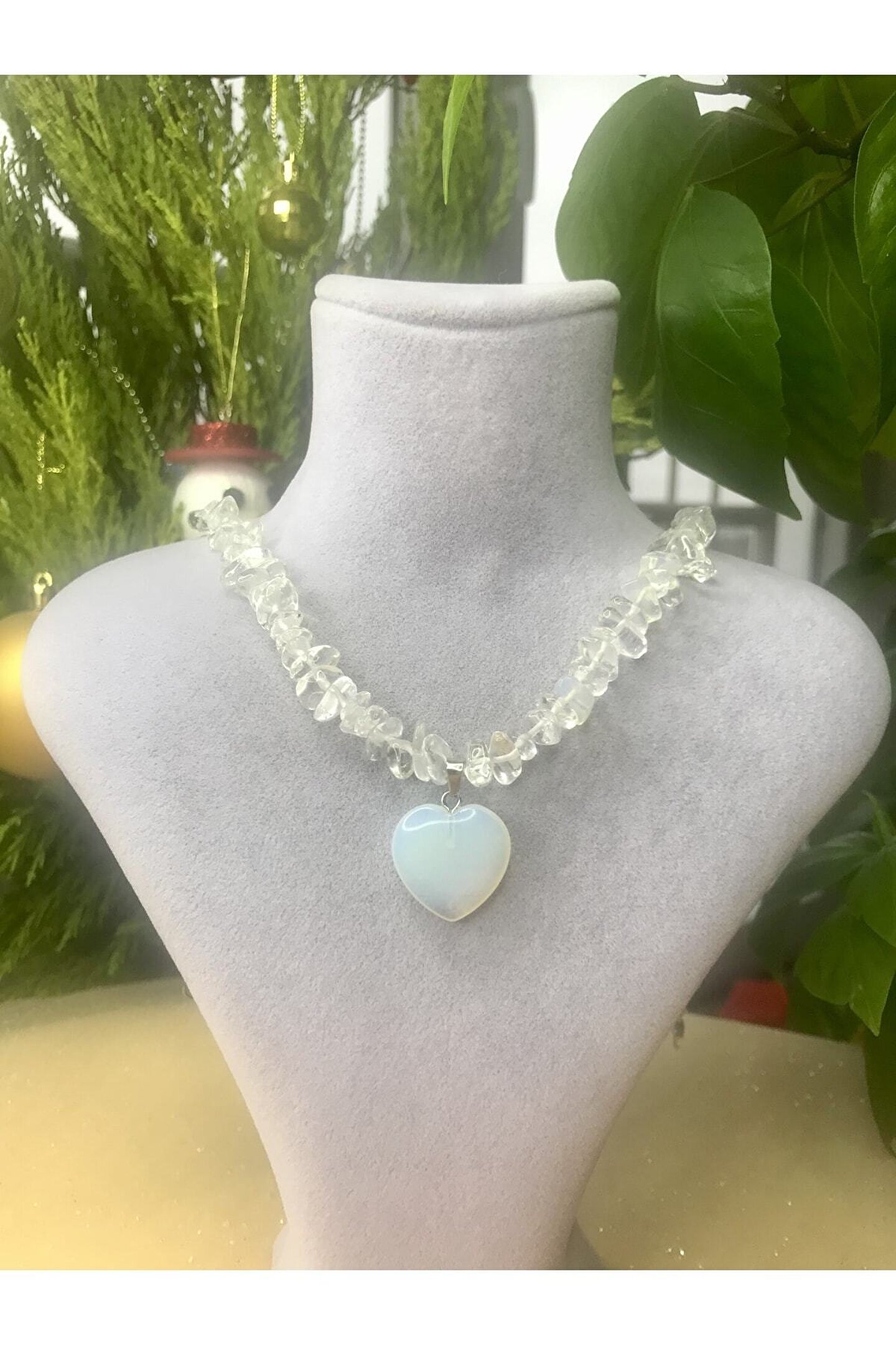 Opal kırıktaş ve Opal Kalpli Kolye Opal Sevgi, umut ve şefkat taşıdır.; Kızgınlık halini yatıştırır.; Göz sağlığına iyi geldiği bilinir.; Duygular ve akıl konusunda bütünlük sağladığı söylenir.; Kişide özgüveni artırır ve kötü huylardan koruduğu bilinir.; Kendini ifade etme özgürlüğü verir.; Bağımsızlık ve Özgürlük taşıdır.; :