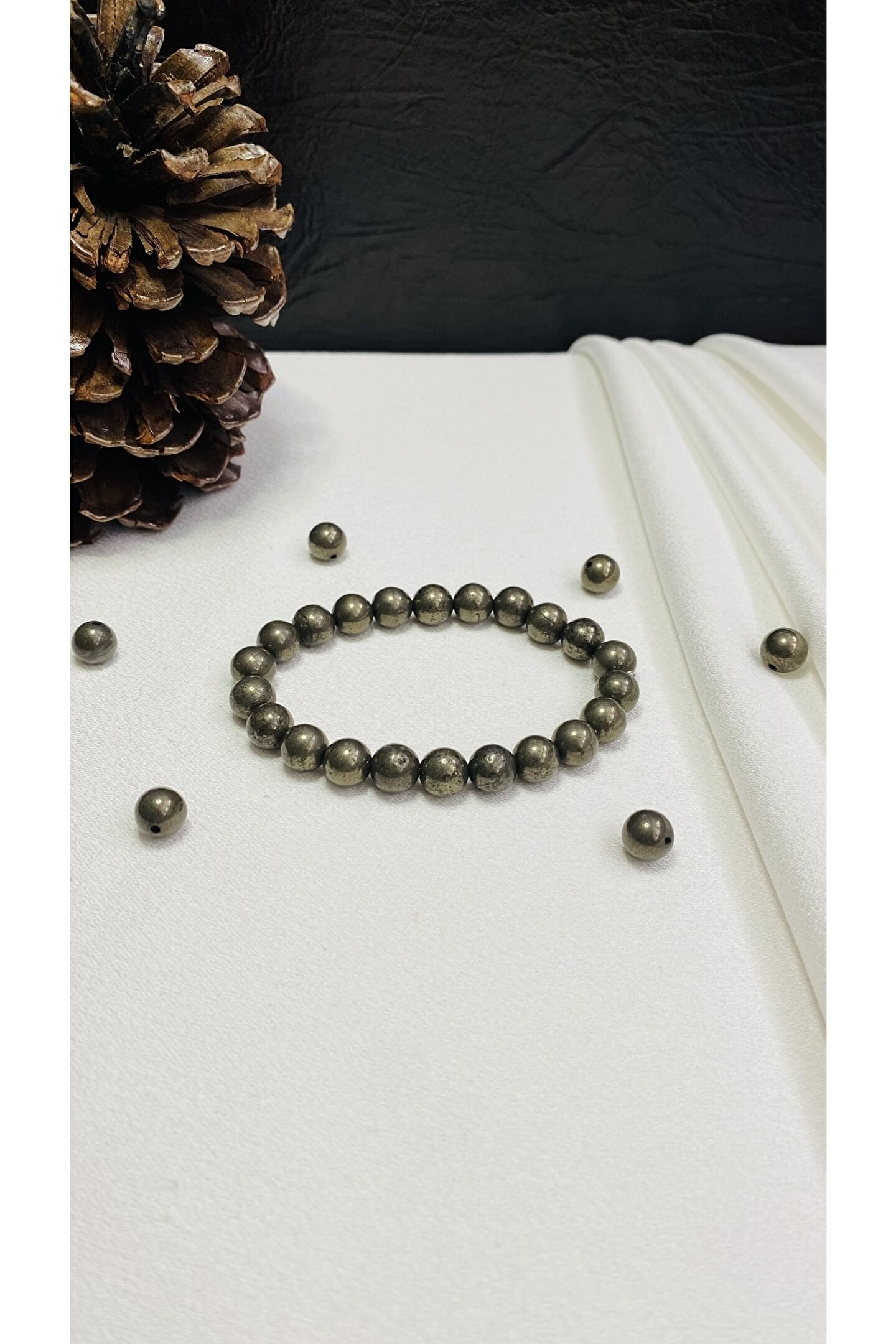 Doğal taş kullanımı sayesinde her bileklik benzersiz ve otantik bir görünüm sunar; Pirit taşı, bileklikte doğal güzelliğini ve şıklığını ön plana çıkarır; Doğal taş materyali ile hem zarif hem de dayanıklı bir aksesuar deneyimi yaşatır; Pirit taşı bileklik, günlük kullanım için idealdir ve her türlü kıyafetle kolayca uyum sağlar;