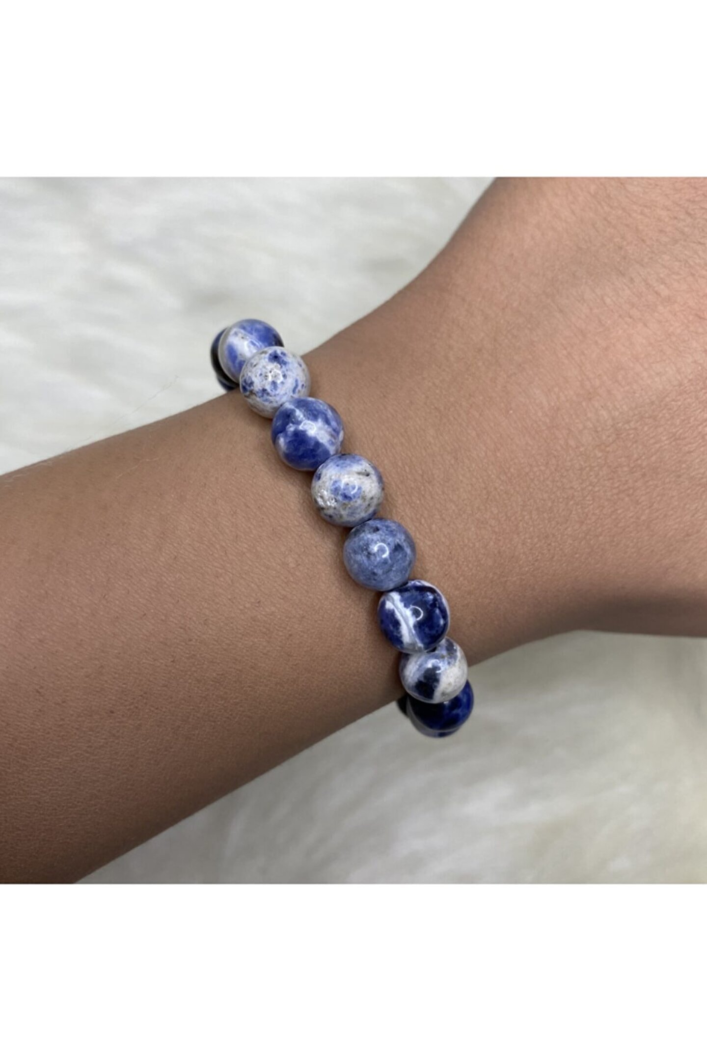 Doğal taş bileklik, şıklığınızı tamamlayacak zarif bir aksesuardır; Sodalit doğal taşı, bilekliğinize benzersiz bir parlaklık ve estetik bir görünüm kazandırır; 8mm boyutundaki taşlar, bileğinizde rahat bir kullanım sunarken aynı zamanda göz alıcı bir etki yaratır; Doğal taş materyali sayesinde her bilek boyutuna uyum sağlar ve konforlu bir deneyim sunar; Sodalit bileklik, günlük kullanım için idealdir ve her türlü kıyafetle kolayca kombinlenebilir;
