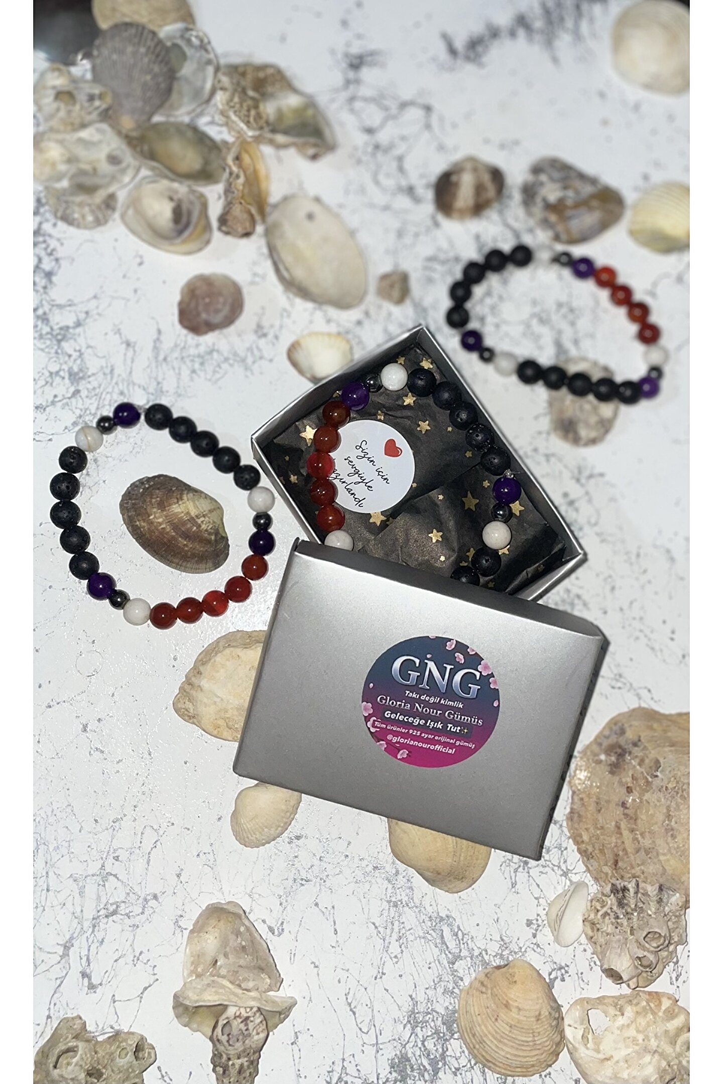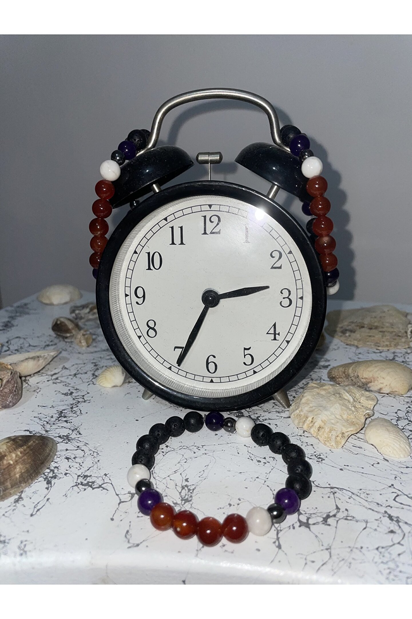Tamamen doğal taşlardan yapılmış özel tasarım bileklik.; Terazi burcu ile uyumlu Taş cinsi: aytaşı,hematit,lavtaşı,akik,ametist.; Taş büyüklüğü : 8 mm Arada bulunan Hematit: 6mm Beden standart