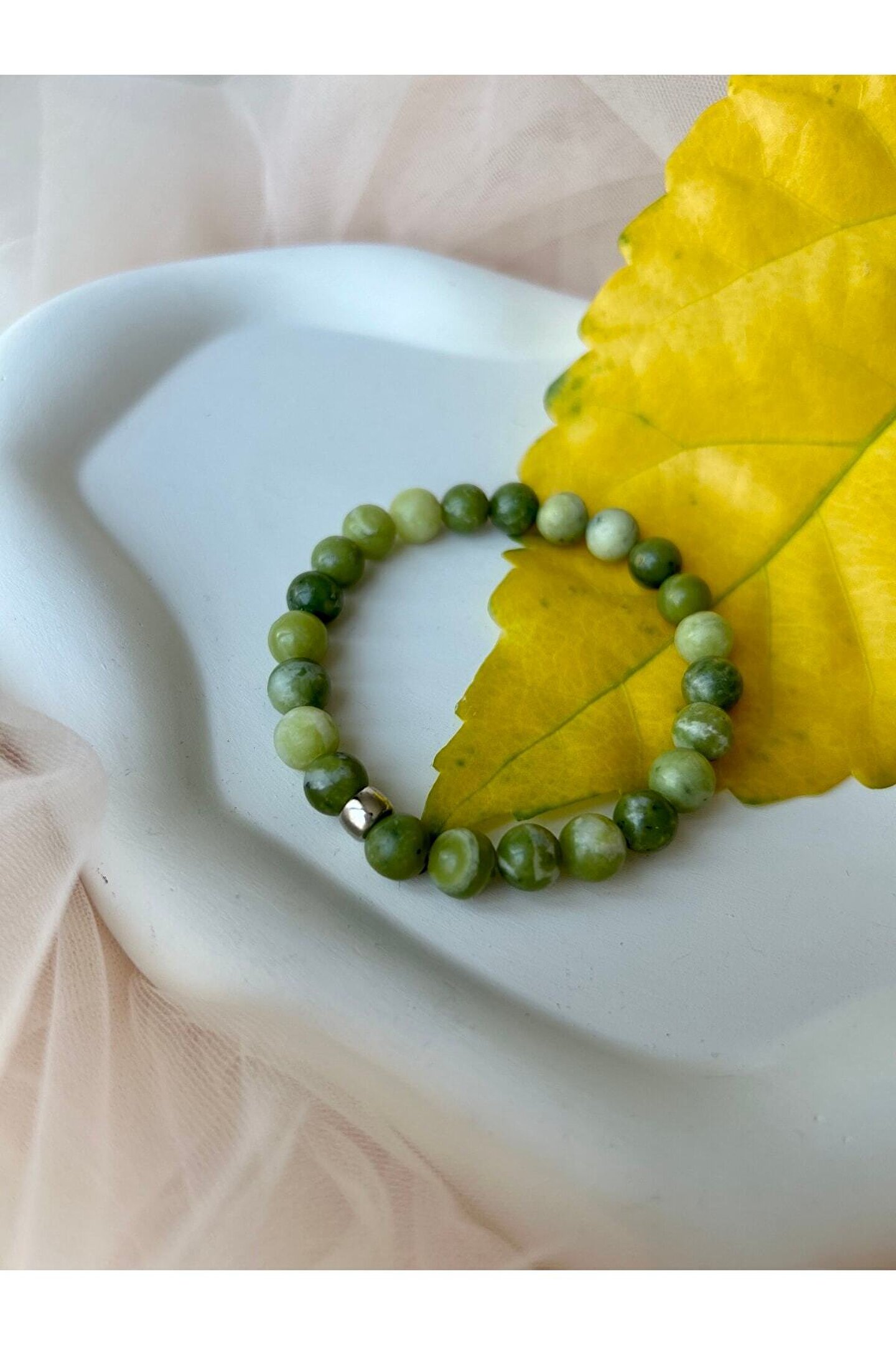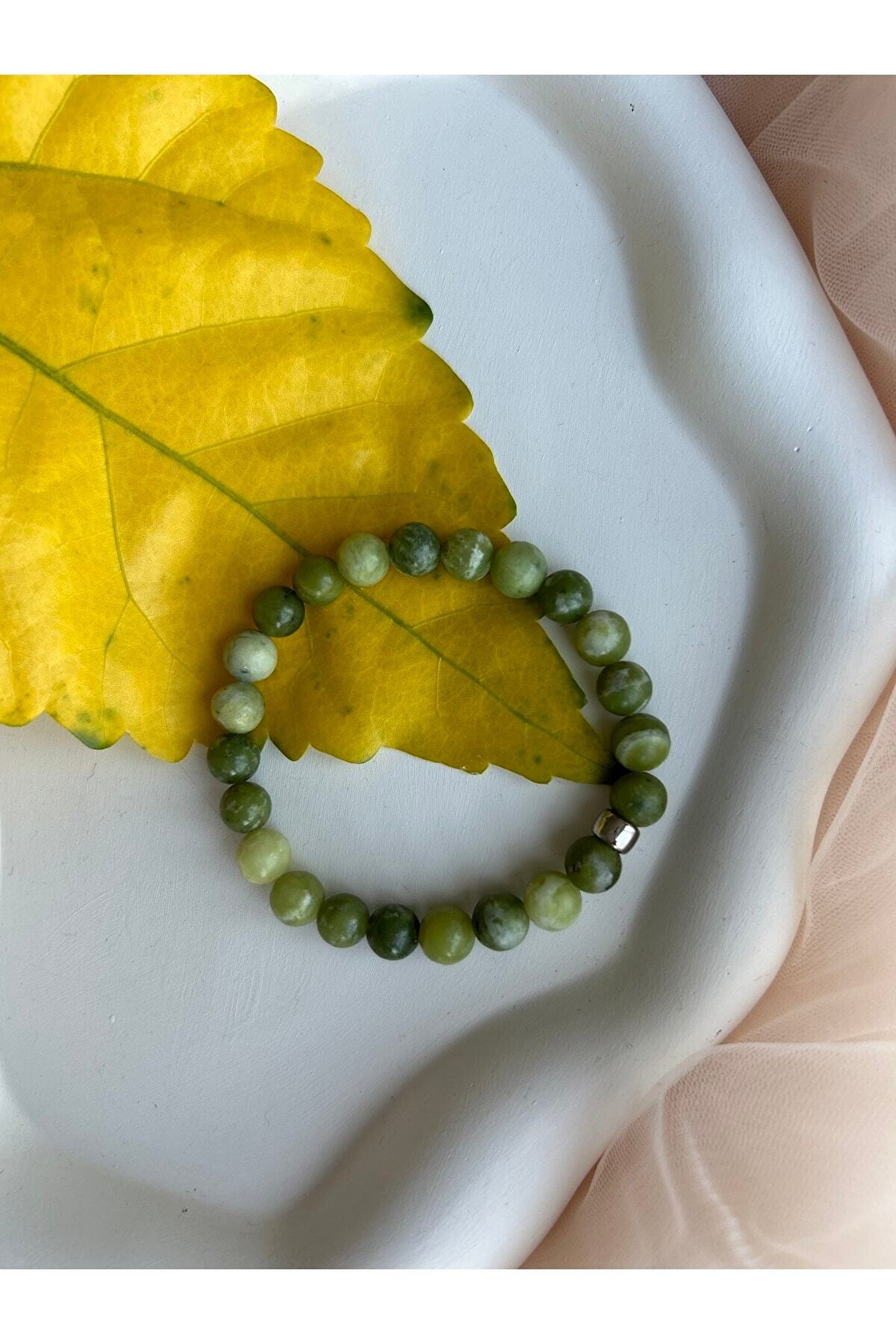 Ölçüleri 18-19 cm kadar standart ölçüdür Özel ölçü için bize ulaşabilirsiniz A kalite 8 mm Yeşim taşlarıyla şık bileklik Yeşim taşı hem sağlık hem de rüyalar için çok etkili bir taştır.; Dengeleyici ve şifalı özelliklerinden dolayı vücutta detoks etkisi yaratır.; Cilt, saç ve lenf bezlerine iyi gelir.; ; Hem fiziksel hem de manevi anlamda yenilenme sağlar.; Zihni dinginleştirerek rüyaları şifalandırır.;