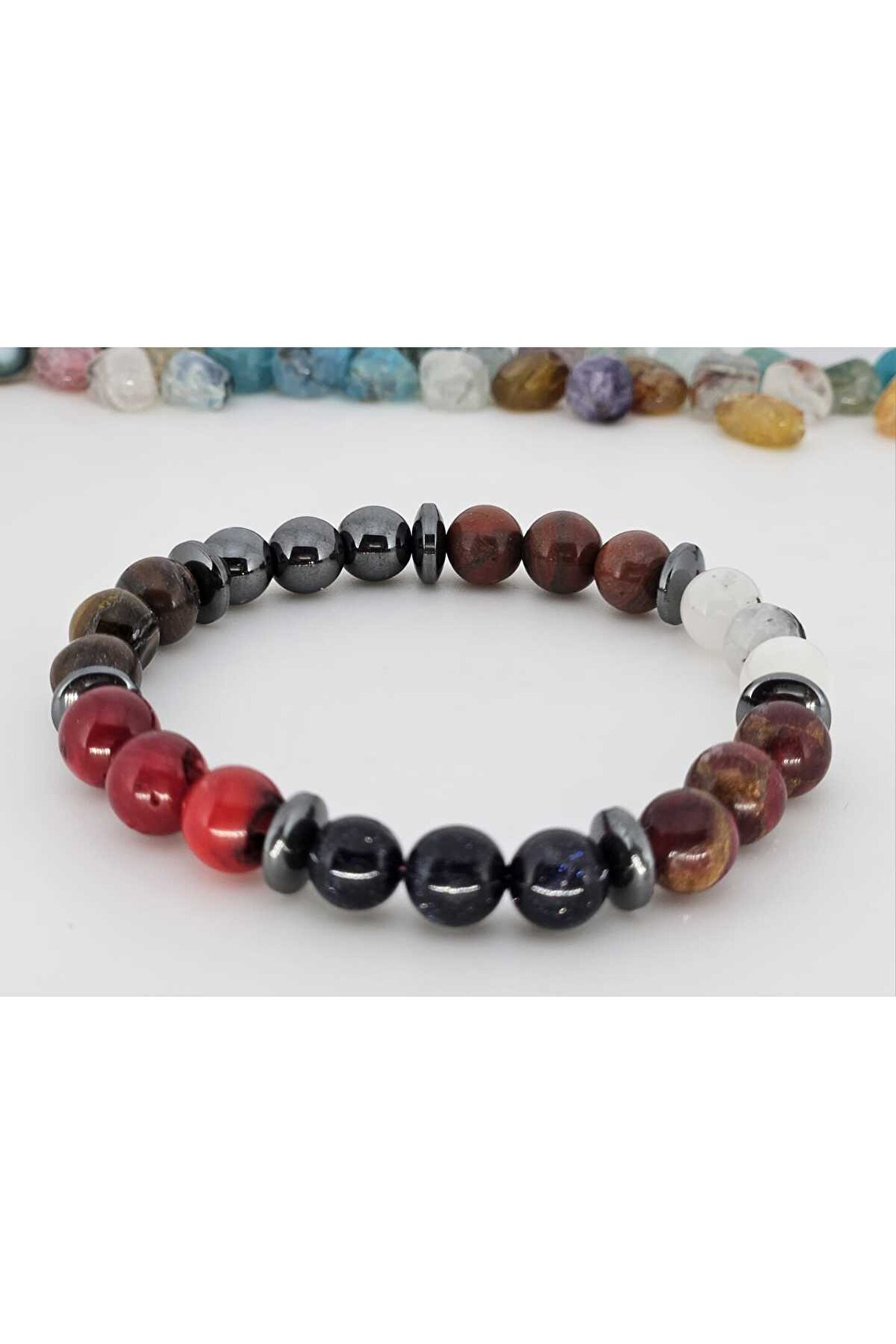 Kök Çakra blokajlı veya düzgün çalışmıyorsa; Özgüve,Güç,Cesaret,Doğru karar verme,Kendine hedef koyma ve hedefe ulaşmada zorluklar yaşar. Kök Çakra Bileklik kök çakra blokajını düzgün çalışmasnı sağlayacaktır. 8mm doğaltaş kullanılmıştır.