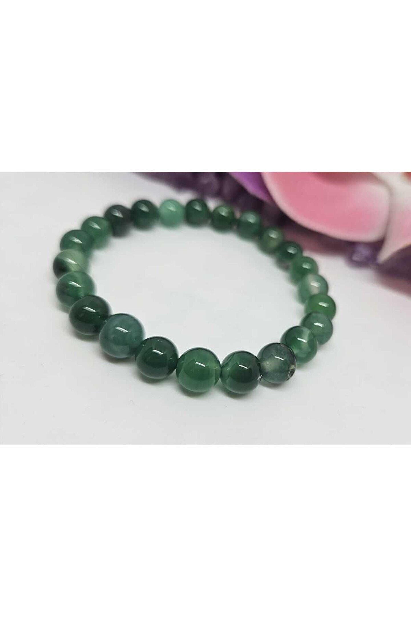 Doğal akik taşı kullanılarak üretilmiş, şıklığı ve zarafeti bir arada sunan yeşil akik bileklik; El emeğiyle işlenmiş akik taşı, her bir bileklikte benzersiz desenler ve renk tonları sergiler; Doğal taş materyali sayesinde, her kullanımda farklı bir deneyim yaşatır ve doğanın güzelliklerini bileğinizde taşımanızı sağlar; Yeşil akik taşı, bileklikte kullanılan diğer renklerle uyum sağlayarak, her türlü kıyafetle kolayca kombinlenebilir;
