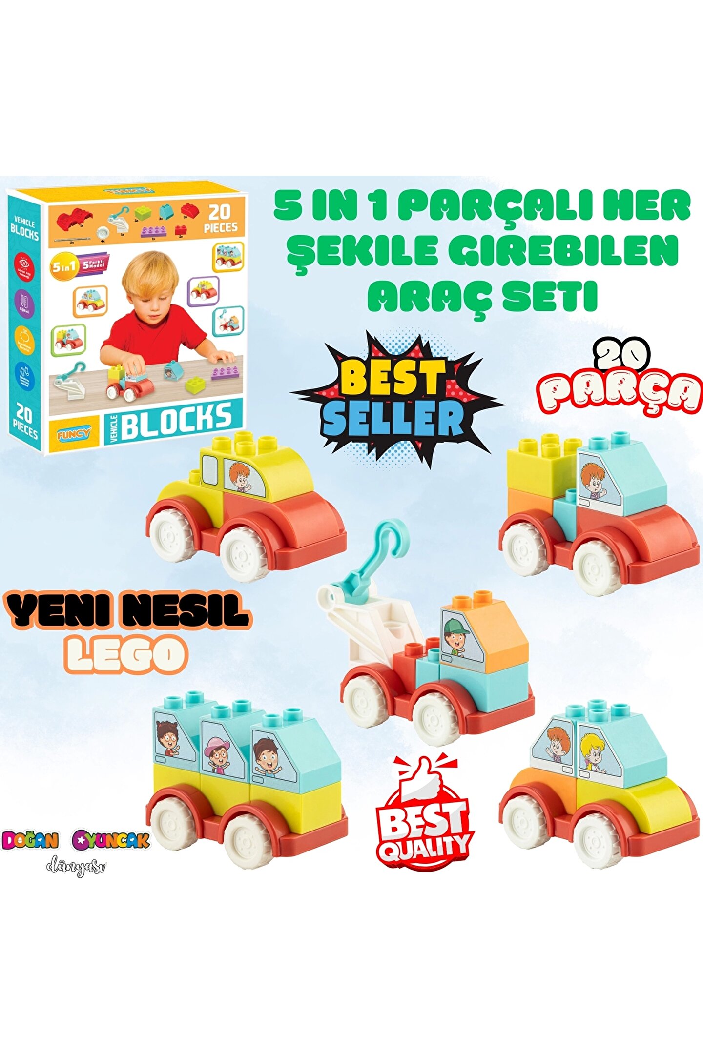 Doğan Oyuncak Dünyası Creative Blok 20 Parça Araç Seti - Slide Blocks - Lego Oyuncakları - Yaratıcı Top Oyunu - Creative L