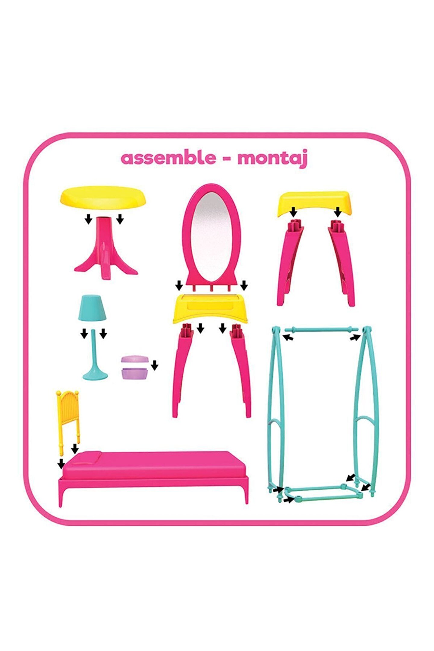 - Çocukların hayal gücünü geliştirmek için tasarlanmış, 3 yaş ve üzeri çocuklar için ideal bir oyuncak seti; - Barbie temalı yatak odası seti, çocukların hayal dünyasını genişletir ve onlara yaratıcılıklarını keşfetme imkanı sunar; - Evcilik ve mutfak seti olarak tasarlanmış bu ürün, çocukların rol yapma becerilerini geliştirmelerine yardımcı olur; - Yatak odası seti, çocukların odalarına renk katarken aynı zamanda onlara kendi evlerini kurma ve yönetme deneyimi sağlar;