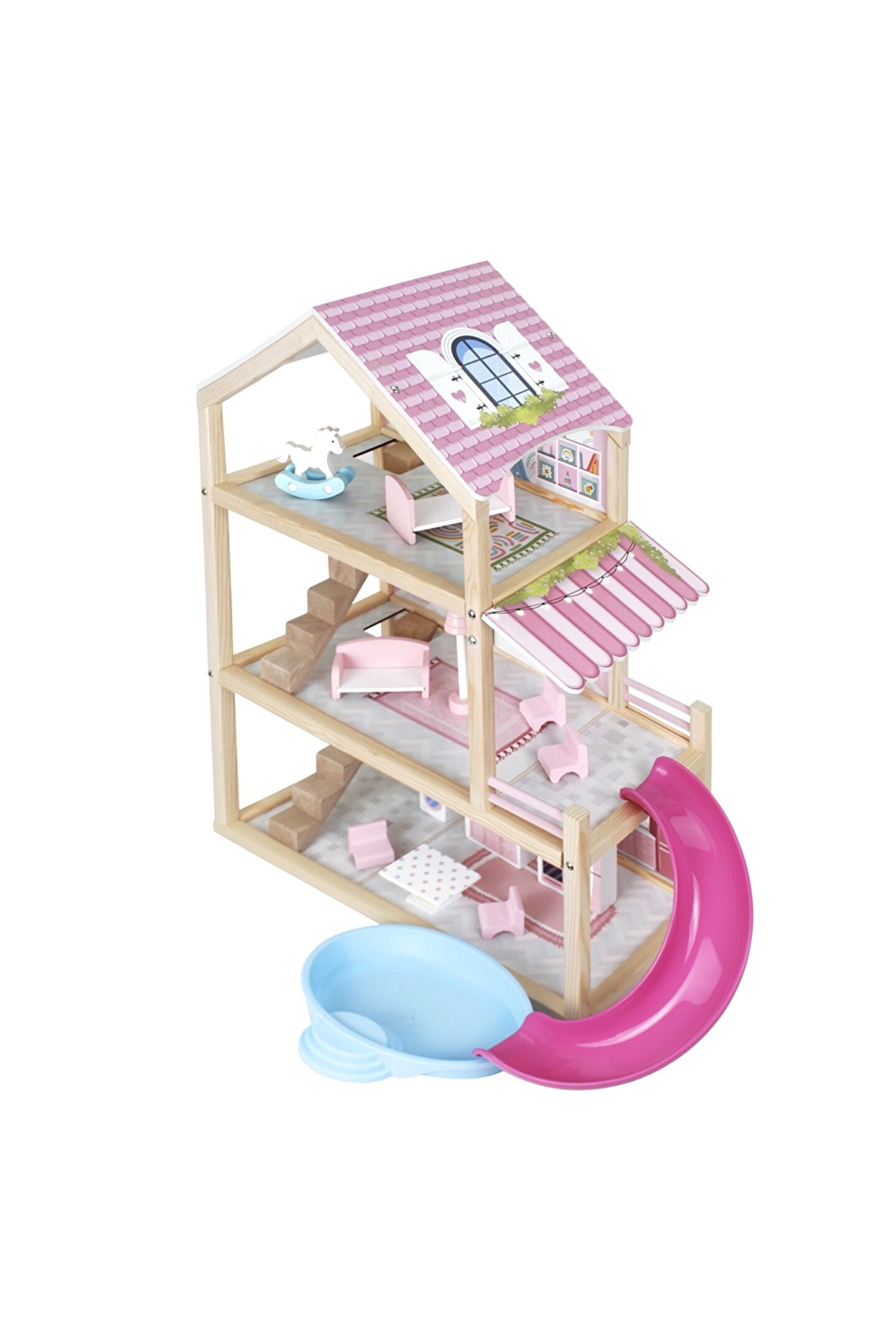 Doğan Oyuncak Dünyası Lüx Ahşap Kaydıraklı Oyun Evi - Ahşap Tatil Evi - Havuzlu Oyun Evi - Ahşap Ev - Ahşap Oyun Evi