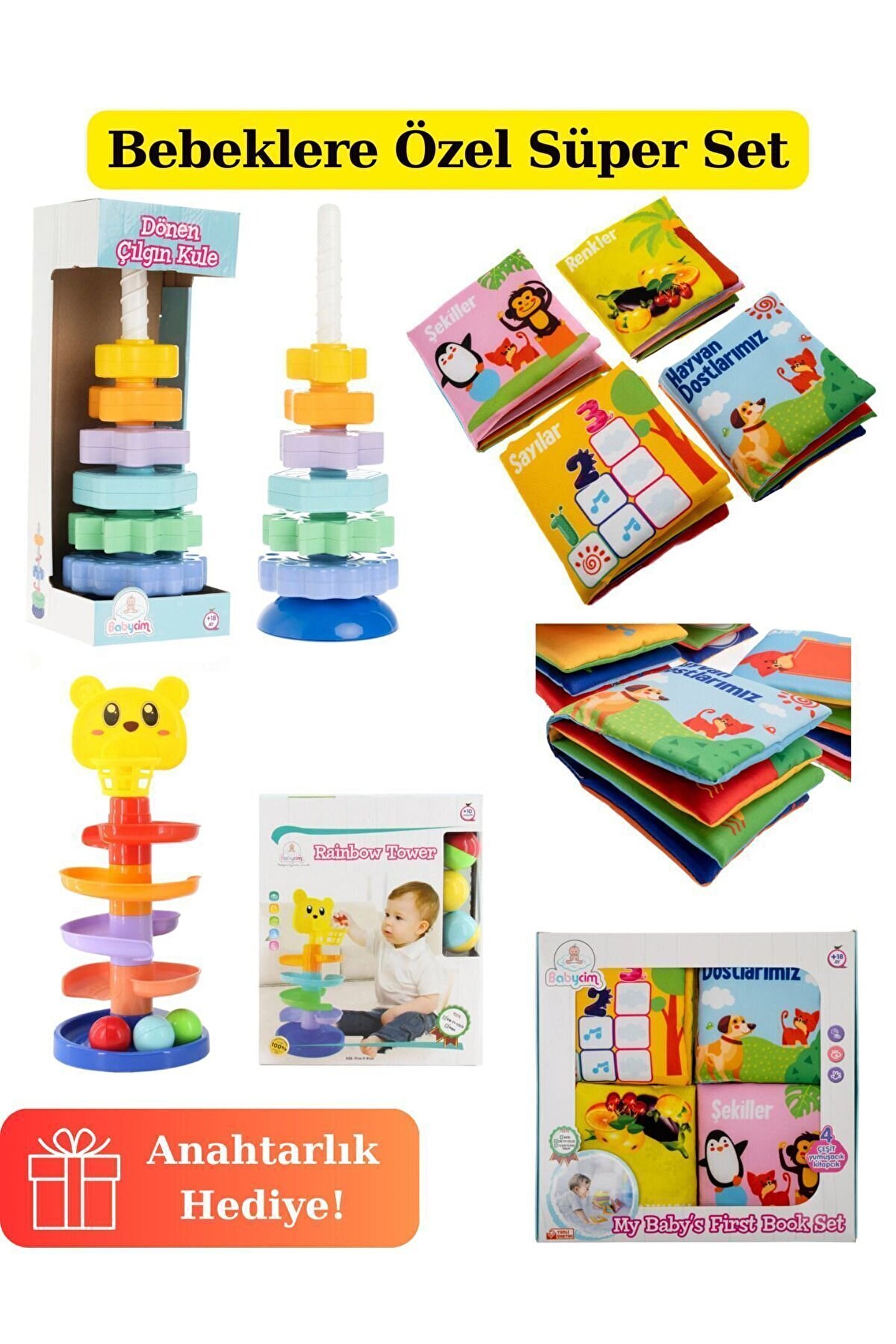 Mega Bebek Oyuncak Seti - Çarklı Kule - Oyuncak Kule - Bebek Kitapları - Bebek Oyuncak Seti - Bebek