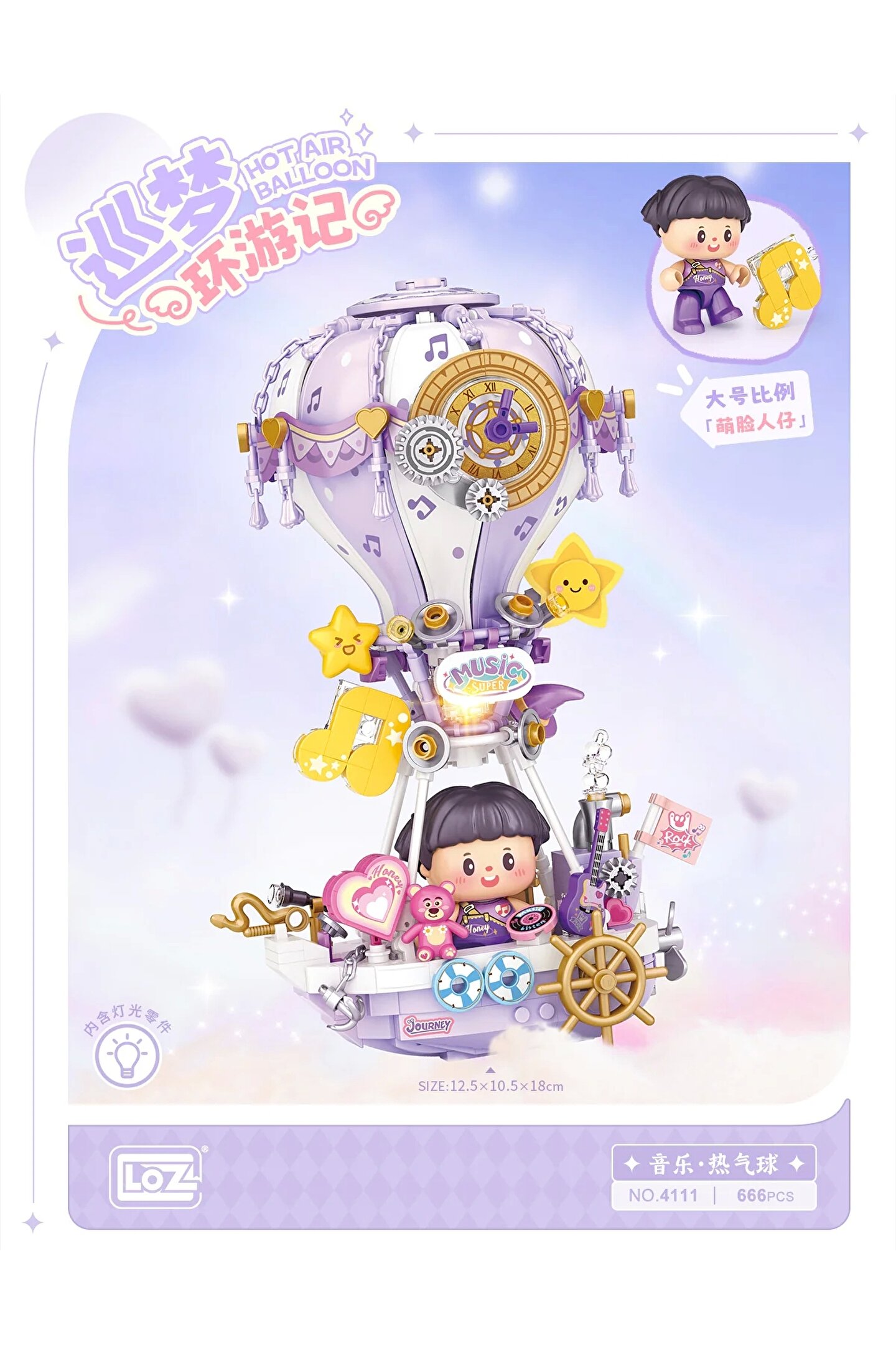 LOZ Yapı Serisi (Set 4111) - Sıcak Hava Balonu Müzik Kutusu, müzikal bir yolculuğun büyüsünü hayata geçiren büyüleyici ve tuhaf bir modeldir. Bu set, müzik kutusu mekanizmasıyla tamamlanan büyüleyici bir sıcak hava balonuna benzeyecek şekilde tasarlanmıştır ve bu da onu sanat, müzik ve yaratıcılığın mükemmel bir kombinasyonu haline getirir.