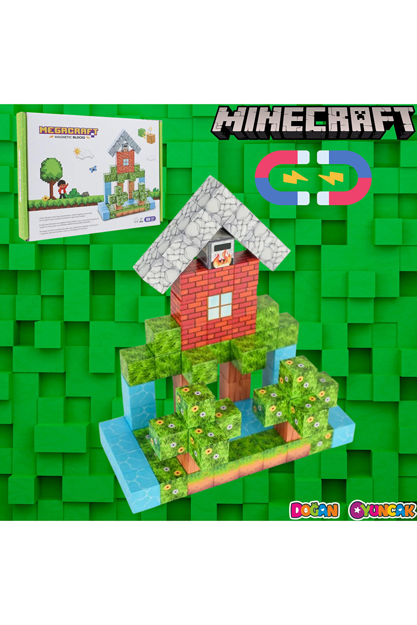 Çocukların hayal gücünü doğayla birleştiren Megacraft Manyetik Bloklar, eğlenceli ve öğretici bir oyun deneyimi sunar.; ; Orman temasından ilham alan bu set, çocukların kendi benzersiz dünyalarını oluşturmalarına olanak tanır.; Manyetik bağlantılar sayesinde kolayca birleştirilebilir ve defalarca yeniden inşa edilebilir!; Megacraft stilinde küp tasarımı mevcuttur.; ; Gerçek mıknatıslı yapılar ve kolayca birleşip dağılmaz.; ; Kaliteli, dayanıklı, güvenli malzemeden üretilmiştir.; ; Koleksiyonluk kutu ambalajına sahiptir.; ; Çocuk eğitici oyuncaklar, çocukların beyin potansiyelini uyarmak ve zekalarını geliştirmek için tasarlanmış oyuncaklardır.; Bu oyuncaklar genellikle aşağıdaki özelliklere sahiptir.; ; Birçok eğitici oyuncak, sosyal becerileri ve takım çalışmasını geliştirmek için çocukları oyuncaklarla veya diğer çocuklarla etkileşime girmeye teşvik eder.; ; Eğitici oyuncaklar, bulmacalar, yapı taşları veya sanat ve el sanatları etkinlikleri aracılığıyla çocukların hayal gücüne ve yaratıcılığına ilham verir.; ; Bazı oyuncaklar, çocukların düşünmesini ve çözmesini gerektiren belirli bulmacalar veya zorluklarla tasarlanarak mantık ve eleştirel düşünme becerilerini geliştirir.; ; 3 yaş ve üzeri içindir.; ; Parça sayısı: 88;