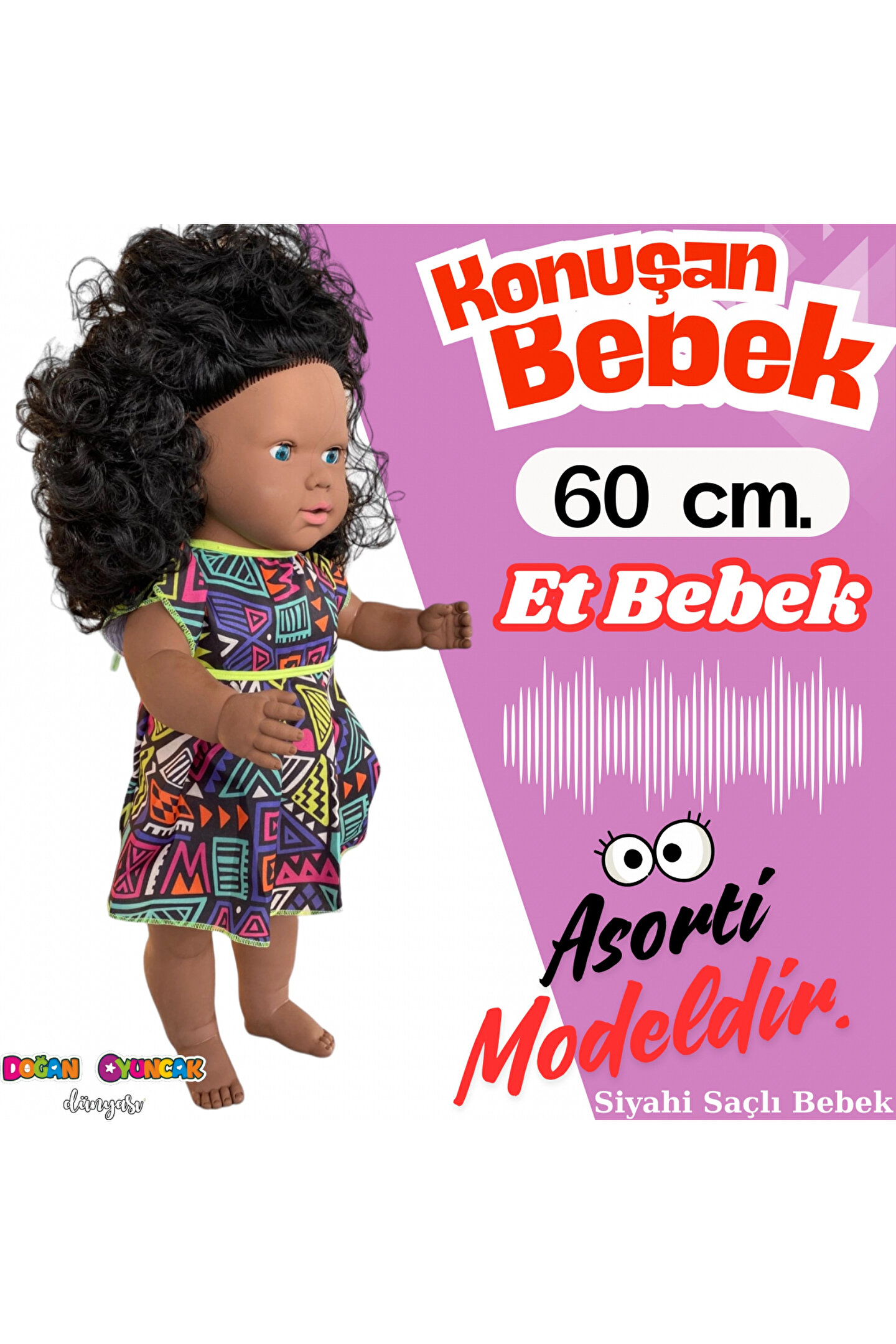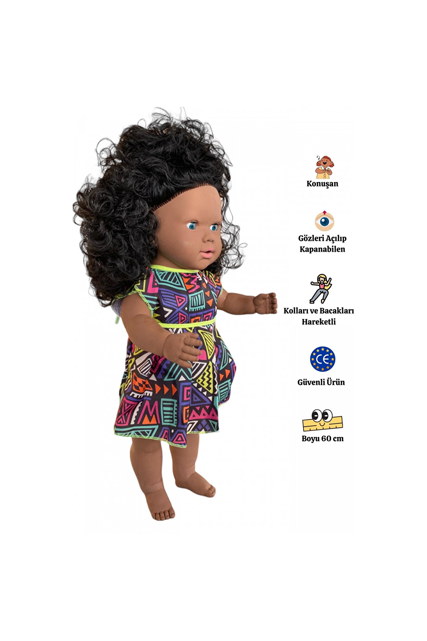 Doğan Oyuncak Dünyası Oynar Gözlü Türkçe Konuşan Siyahi Nazlı Saçlı Et Bebek 60 Cm. - Konuşabilen Bebek - Saçlı Büyük Bebe