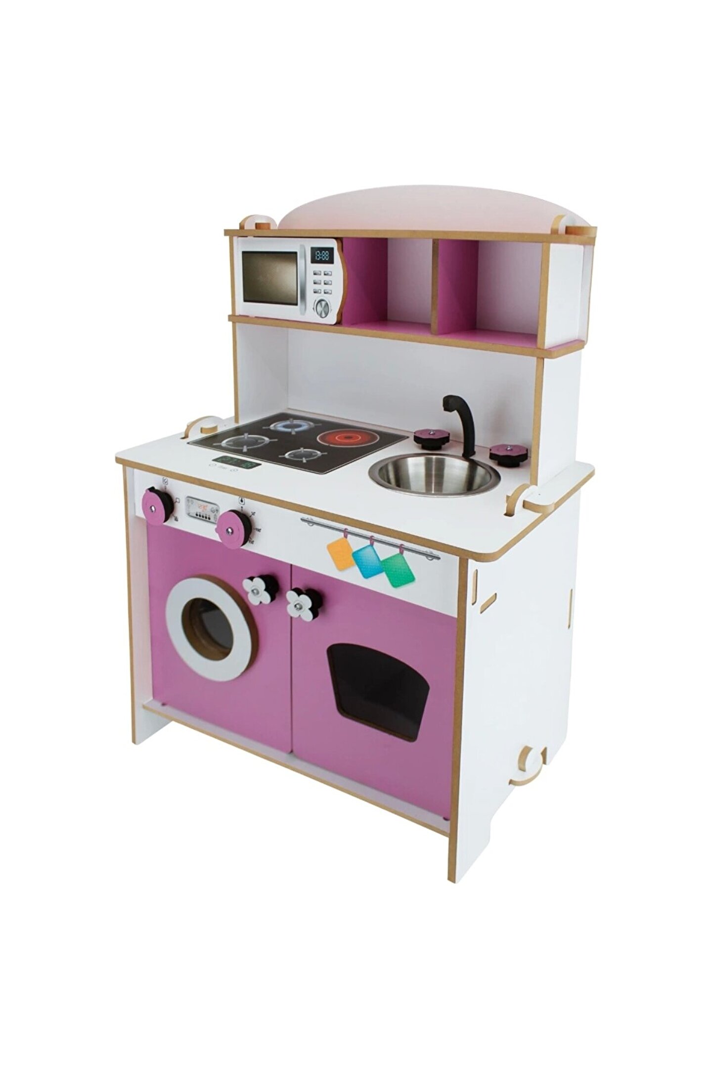 Pratik Hamarat Ahşap Mutfak - Ahşap Çocuk Mutfağı - Mutfak Seti - Kapaklı Mutfak - Pembe