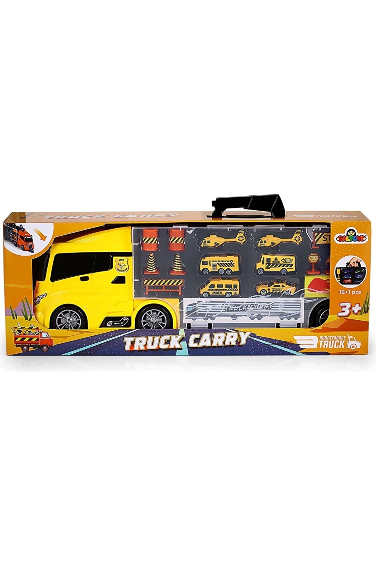 Oyuncak İnşaat Taşıyıcı Tır 15+1 Parça GLT-E404, çocuklar için hem eğlenceli hem de öğretici bir oyuncaktır.; ; Bu İnşaat taşıyıcı tır, 15 araç ve 1 adet İnşaat şehri aracıyla birlikte gelir, böylece çocuklar İnşaat temasını canlandırabilirler.; ; Tır, çeşitli İnşaat araçlarını taşıyabilen geniş bir kasa ile tasarlanmıştır ve detaylı yapısıyla dikkat çeker.; ; Çocuklar, bu oyuncak sayesinde İnşaat operasyonlarını simüle edebilir ve yaratıcı oyun senaryoları oluşturabilirler.; ; Ayrıca, bu set, motor becerilerini geliştirmek ve hayal gücünü artırmak için ideal bir seçenektir.; ; Kutu Boyutu : 63x23x13 Cm; Tırın ön tarafında kaydırak için bir kapak bulunmaktadır.; Dorse ksımının ön tarafından araçları koyup ön tarafından çıkartabiliyorsunuz.; ; Harikalar yaratan bu oyuncağı kim istemez ki!; Haydi sende hem aksesuarı hemde kaydırağı ile meşhur olan bu oyuncağa hemen sahip ol!;