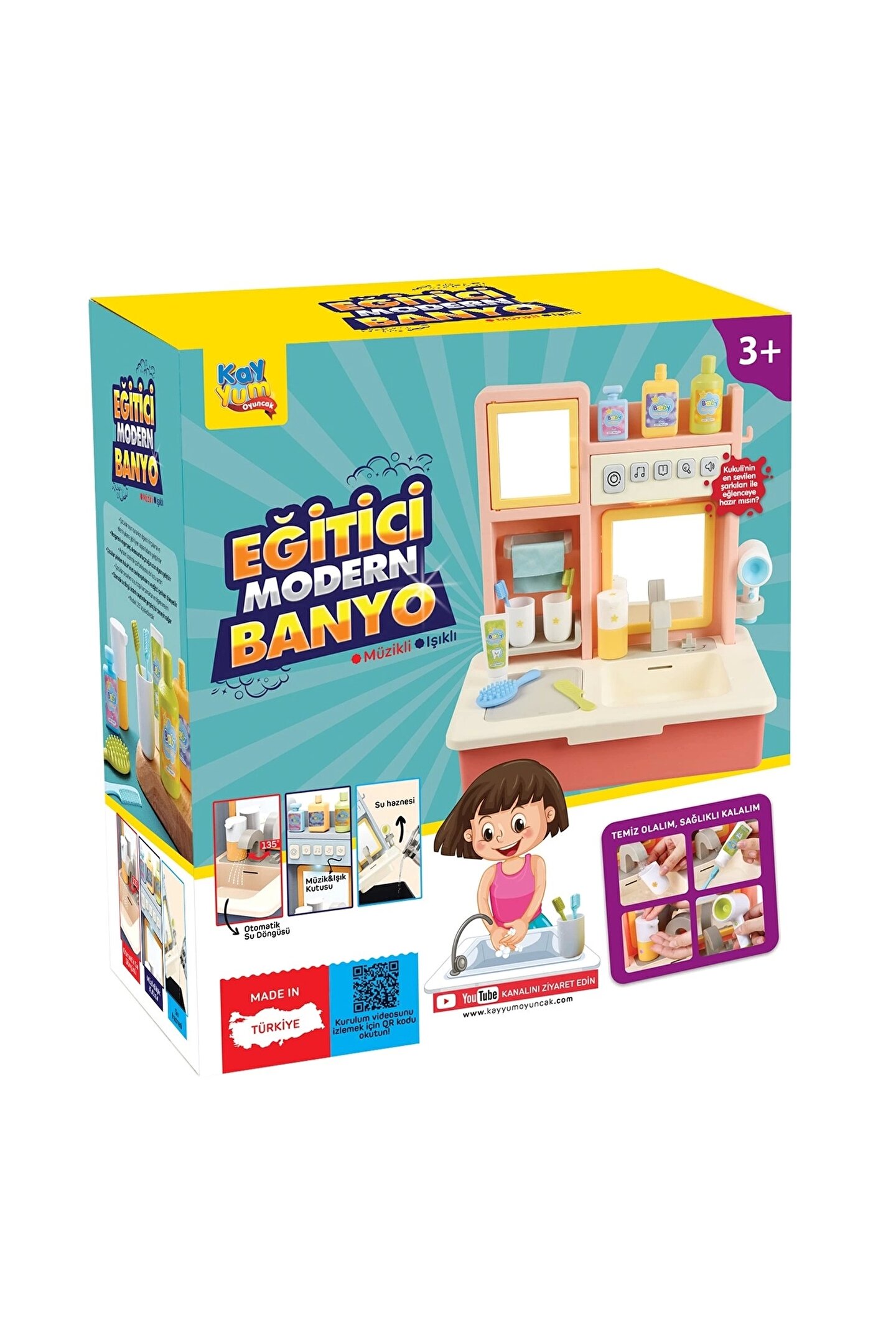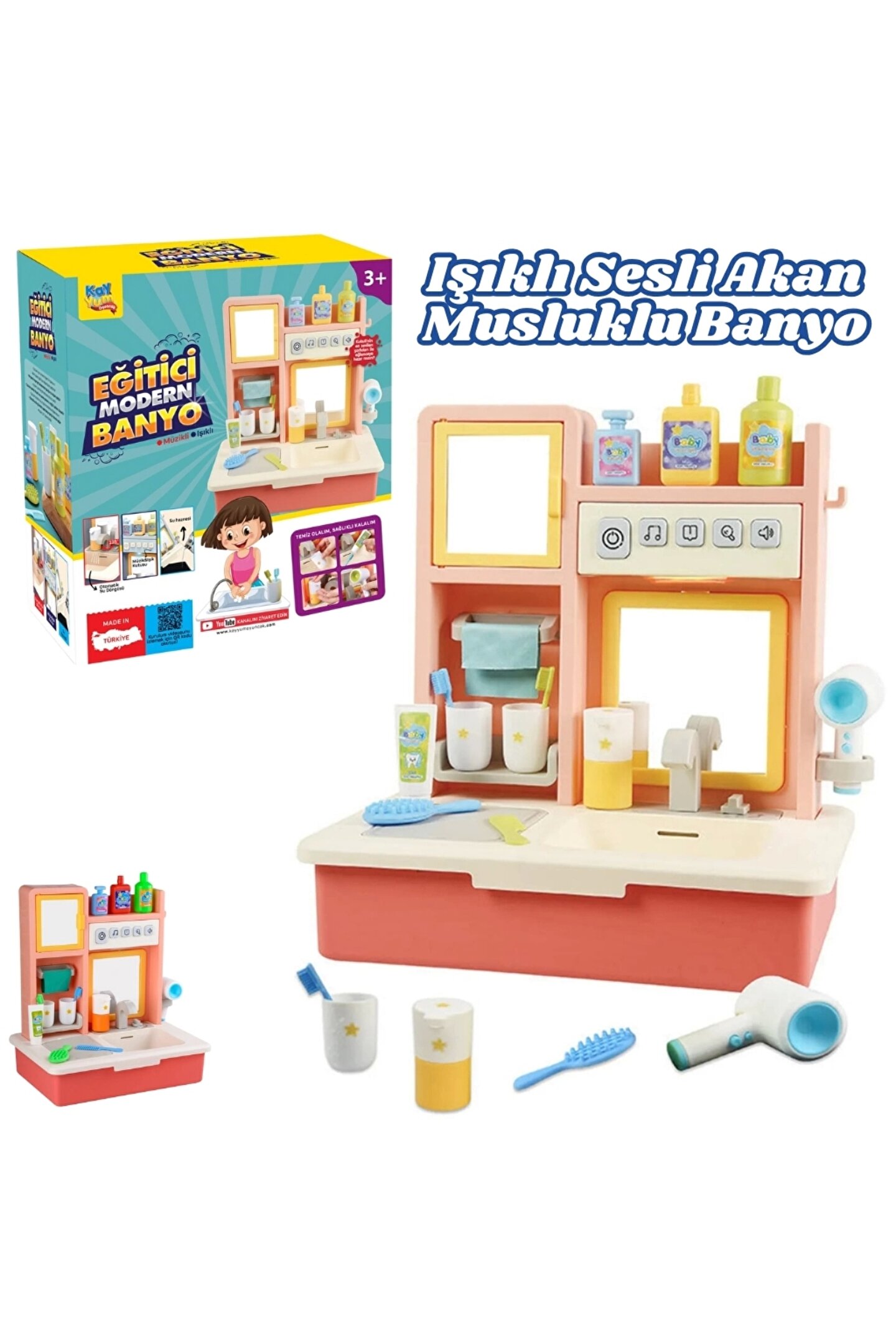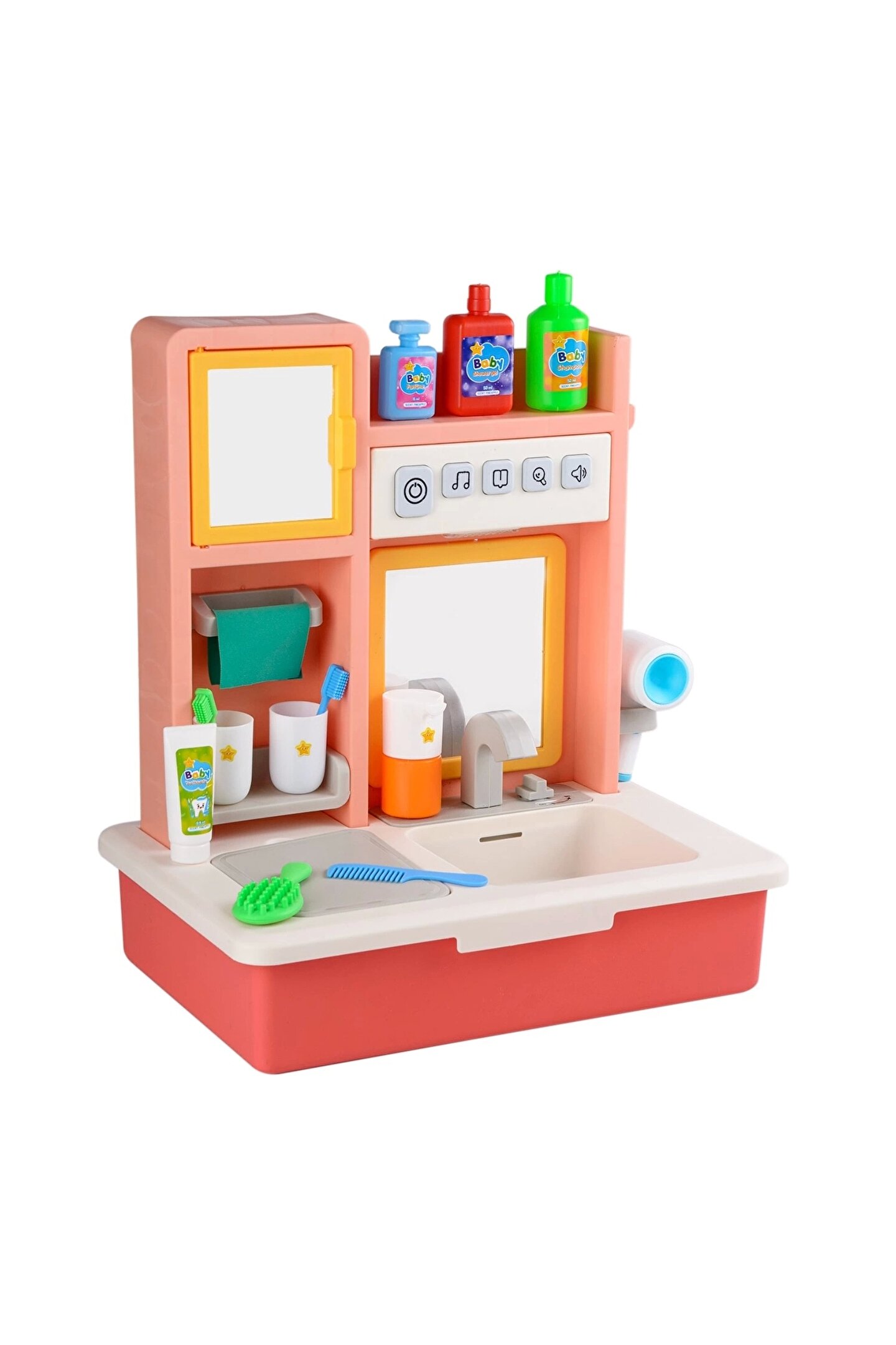 Doğan Oyuncak Dünyası Su Akıtan Modern Banyo Seti - Çeşmeli Işıklı ve Sesli Lavabo - Banyo Seti - Su Akan Musluk - Pembe