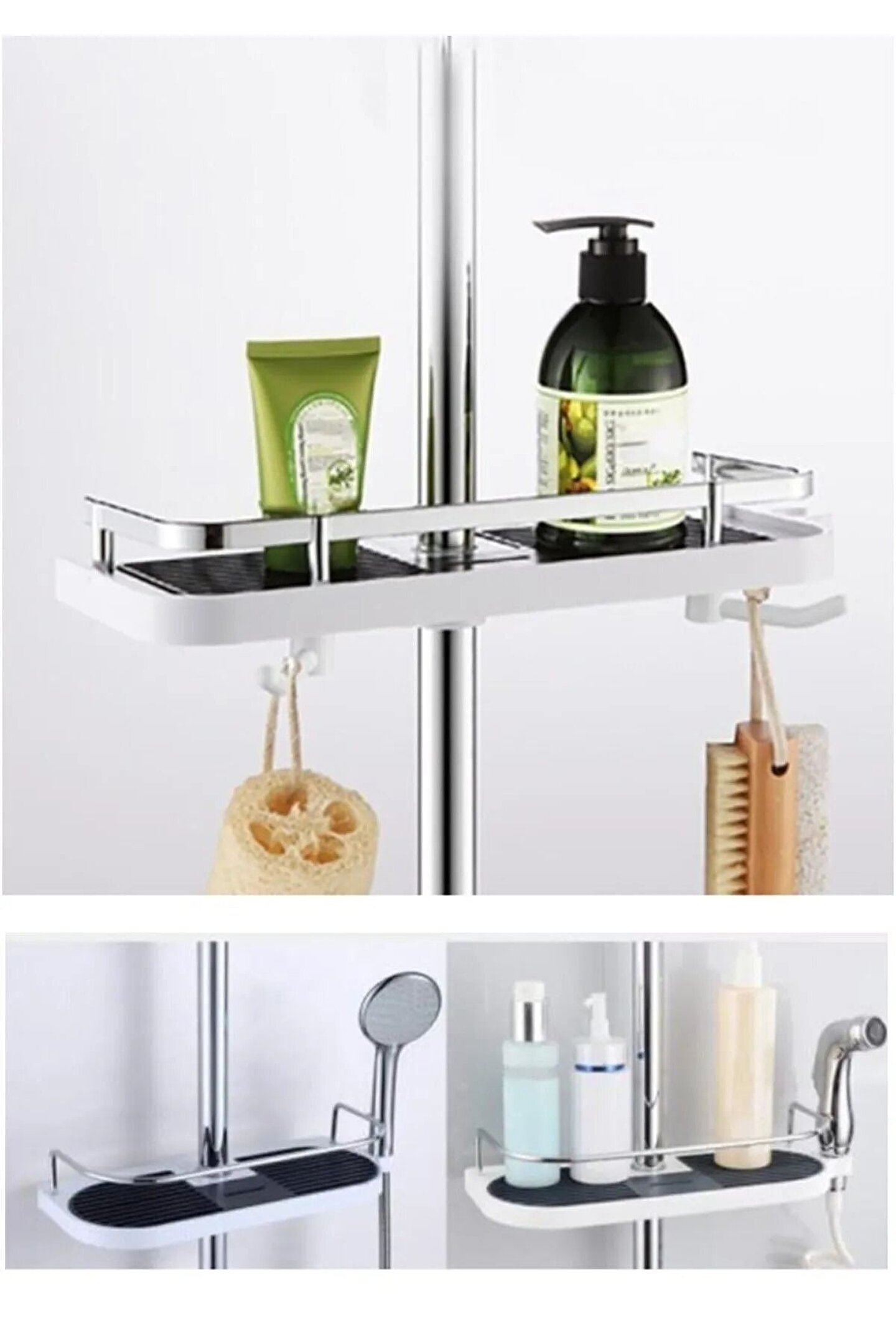 Boyut: 300*120*60mm ; Malzeme: ABS ; Iki dönebilen kanca vardır, asılı havlu ve banyo topu, yerden tasarruf. ; Kolay Kurulum, süzgeç ayrılabilir olabilir. ; Fit için 22-25mm çapı duş tüp. ; Paket içeriği: ; 1 PC x Raf ;