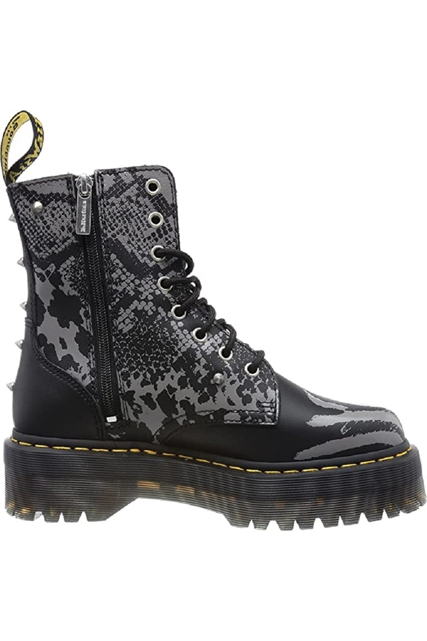 Malzeme: Deri ; Dış Malzeme: Deri ; Tek Malzeme: Kauçuk ; Topuk Tipi: Düz ; Kapatma: Dantel Up ; Dr. Martin'e özgü baskılı hayvan desenlerine sahip bağcıklı bot. Üst kısımda leopar, zebra ve parlak baskılı pankish bir kaplamada bir Sürüngen deseni bulunur. Çivili sırt askısı JADON, Dr. Marten'in klasik 8H botlarının ve kalın bir tabanın temelidir. Popüler bir özellik, botların yan fermuarlarla yapılmış olması, giyilmelerini ve çıkarılmalarını kolaylaştırmasıdır. Botun yakasına tutturulmuş imzalı bir topuk halkası ve kaynakta sarı dikişler vardır ;
