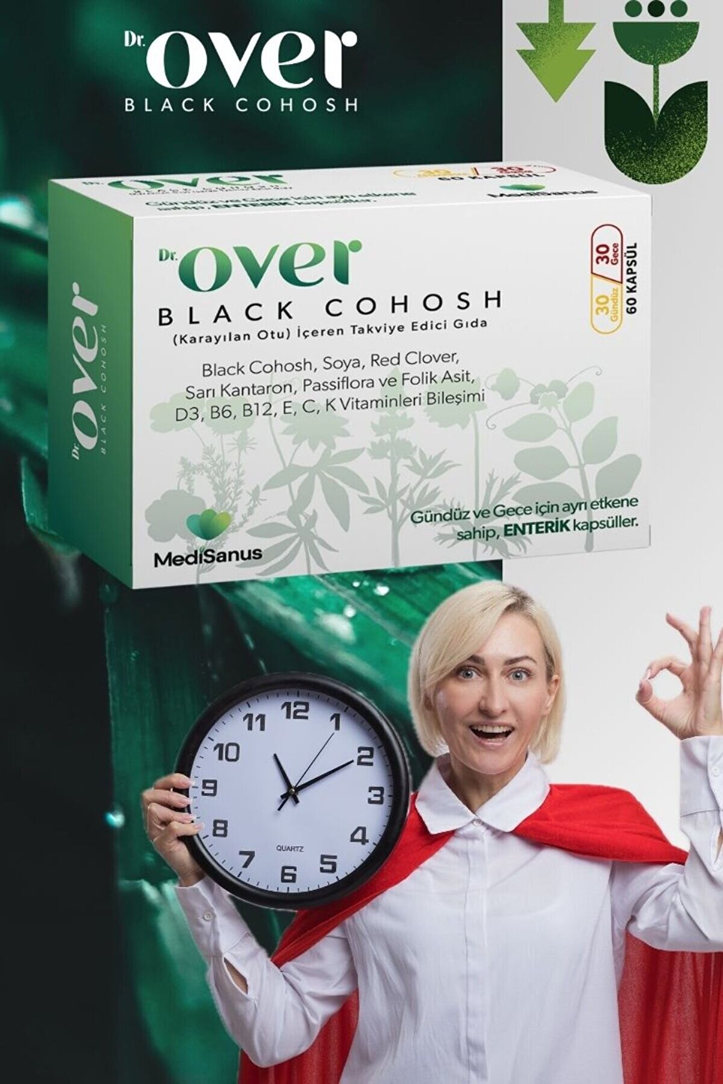 Dr over Black Cohosh, Karayılan Otu, Soya, Red Clover, Sarı Kantaron, Passiflora Içeren Gıda Tak. 1 Kutu